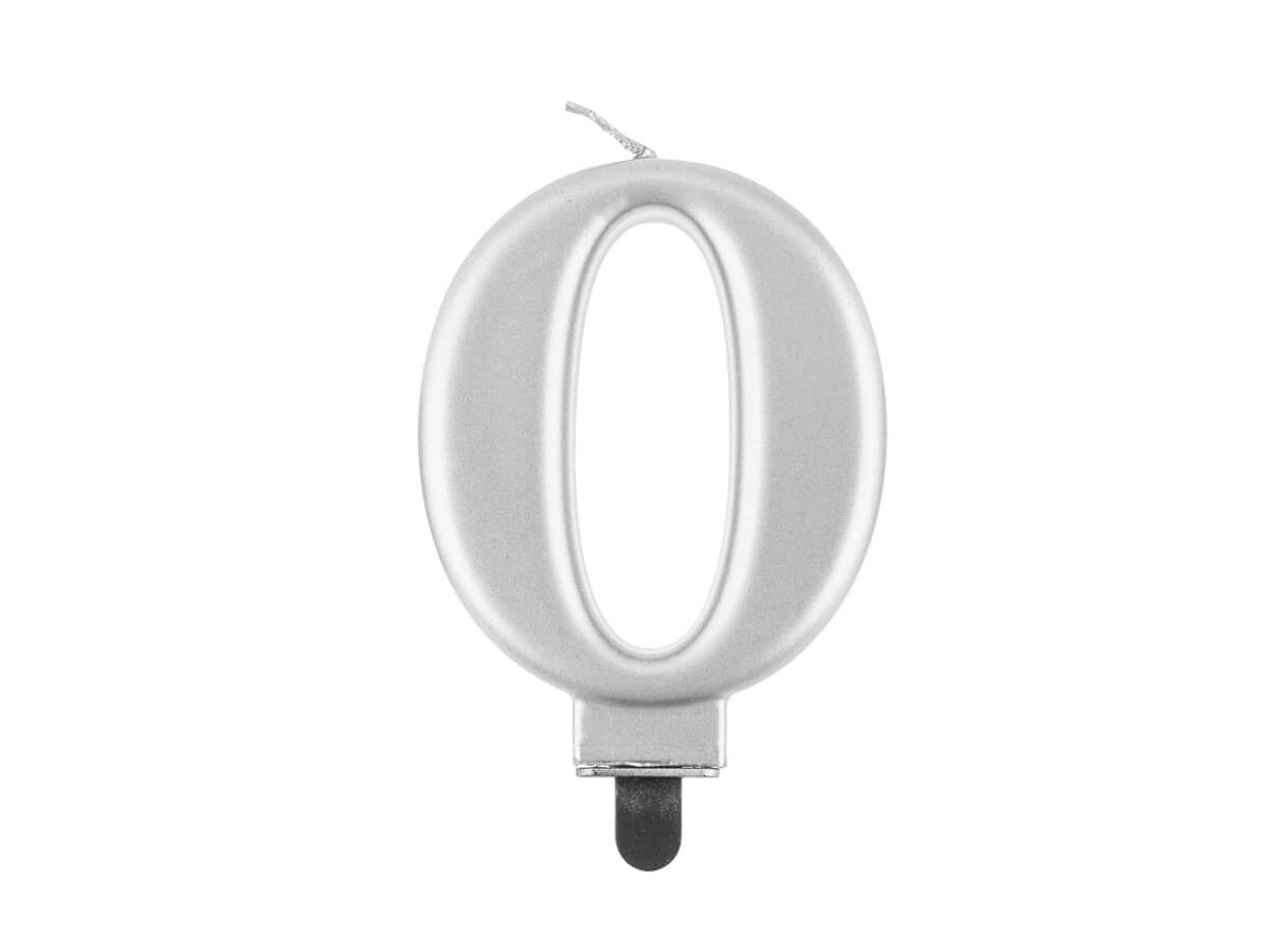 Świeczka cyferka metaliczna srebrna - 0 - zero