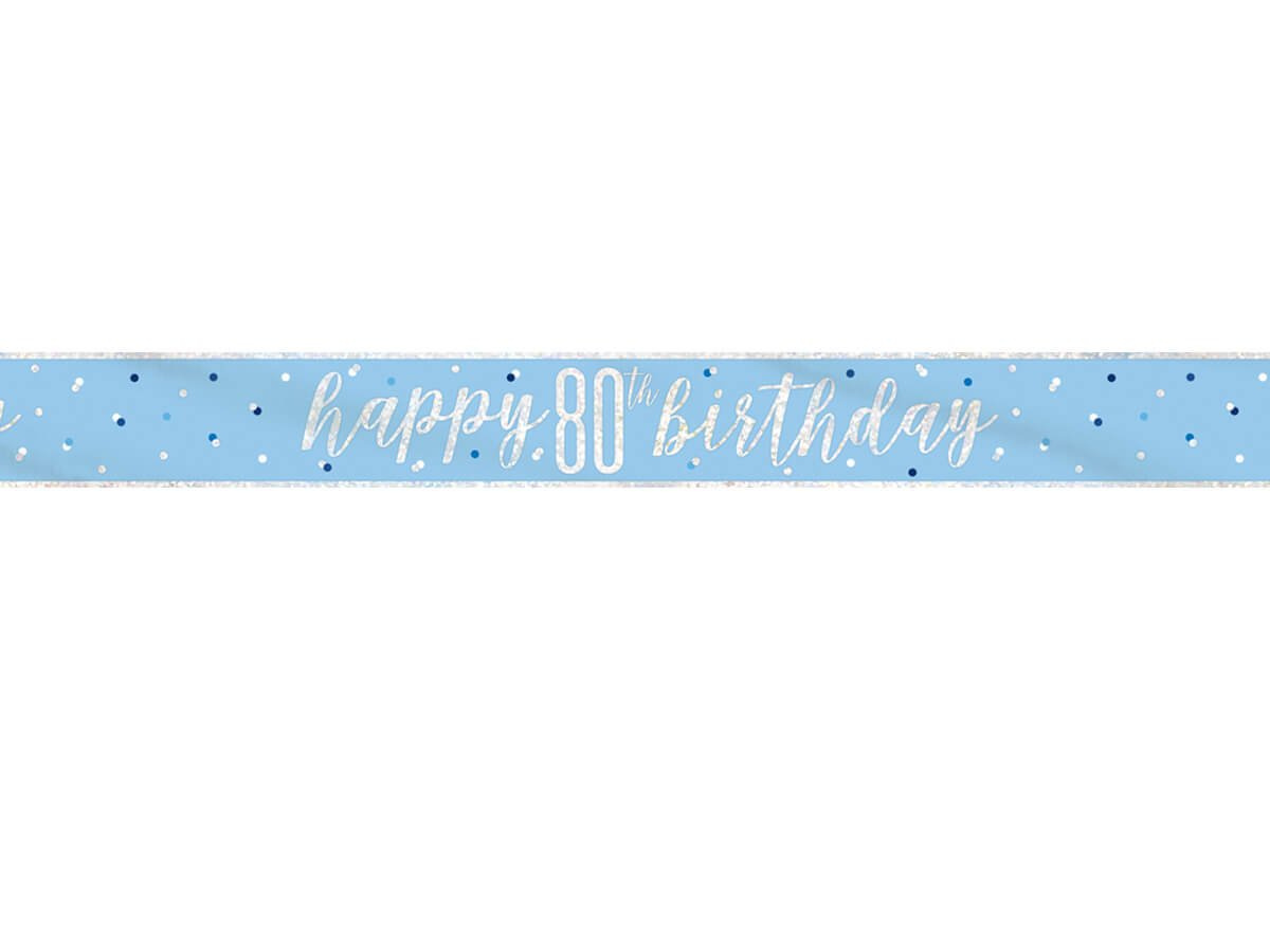 Baner Happy Birthday niebieski na 80 urodziny - 274 cm - 1 szt.