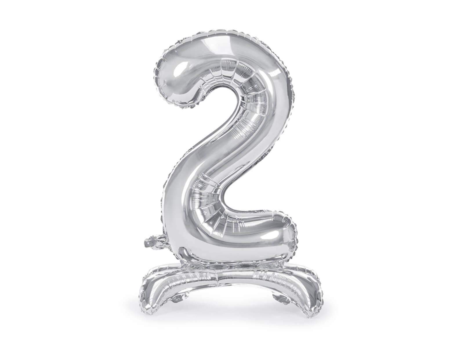 Balon foliowy stojący cyfra 2 srebrna - 70 cm