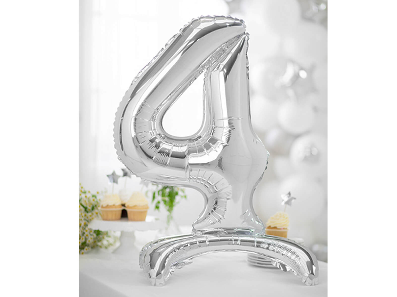 Balon foliowy stojący cyfra 4 srebrna - 70 cm