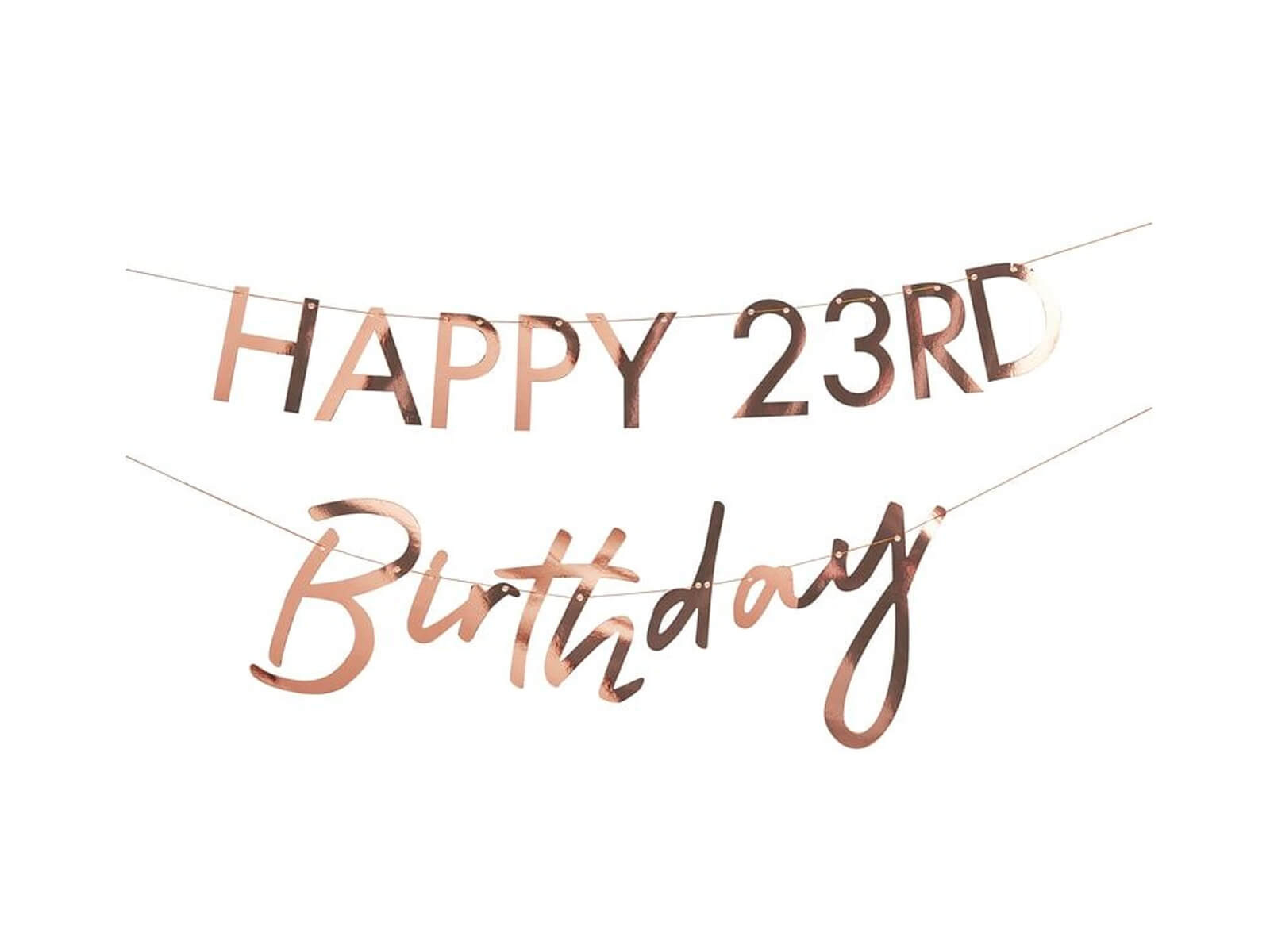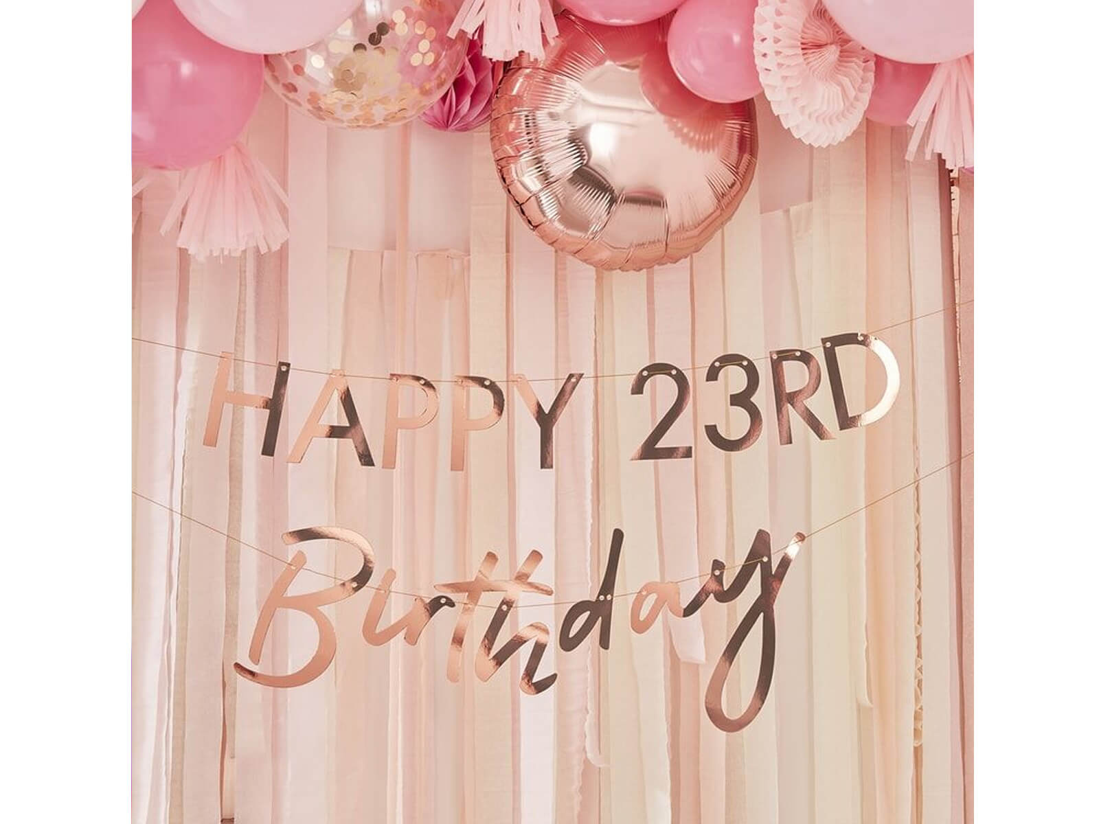 Baner Happy Birthday personalizowany różowe złoto - 150 cm - 1 szt.