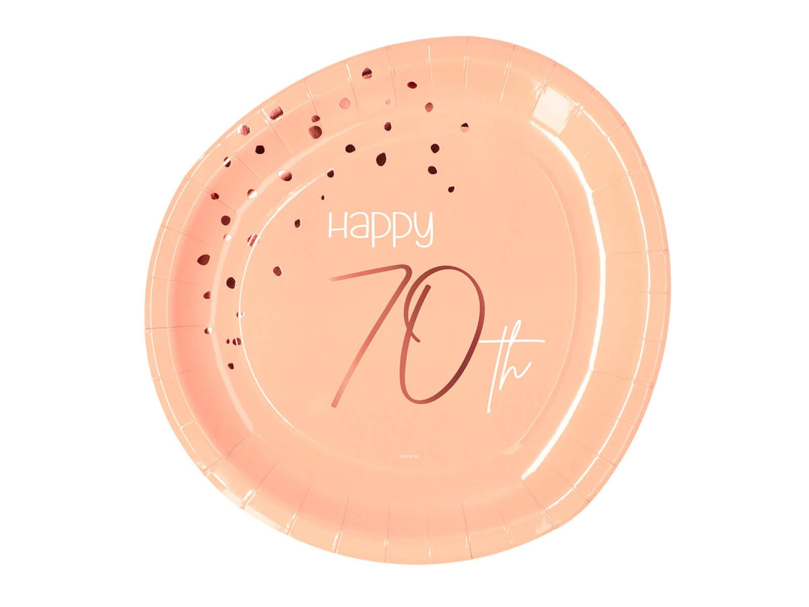 Talerzyki urodzinowe brzoskwiniowe Happy 70th - 23 cm - 8 szt.