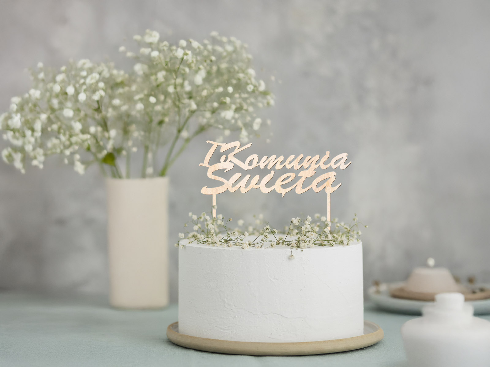 Uczcij to wyjątkowe wydarzenie w wielkim stylu dzięki naszemu pięknemu topperowi na tort z okazji Pierwszej Komunii Świętej! Ten drewniany topper sprawi, że Twój tort komunijny będzie wyglądał doskonale i będzie idealną dekoracją na ten wyjątkowy dzień. Naturalna sklejka nadaje mu niepowtarzalny wygląd i sprawia, że będzie uroczą pamiątką po zakończeniu przyjęcia. Ta wspaniała dekoracja o wymiarach 20x14 cm doskonale sprawdza się jako centralny punkt każdego tortu komunijnego. Spraw, aby to uroczyste spotkanie było jeszcze bardziej niezapomniane dzięki tej wspaniałej ozdobie - nie pożałujesz!
