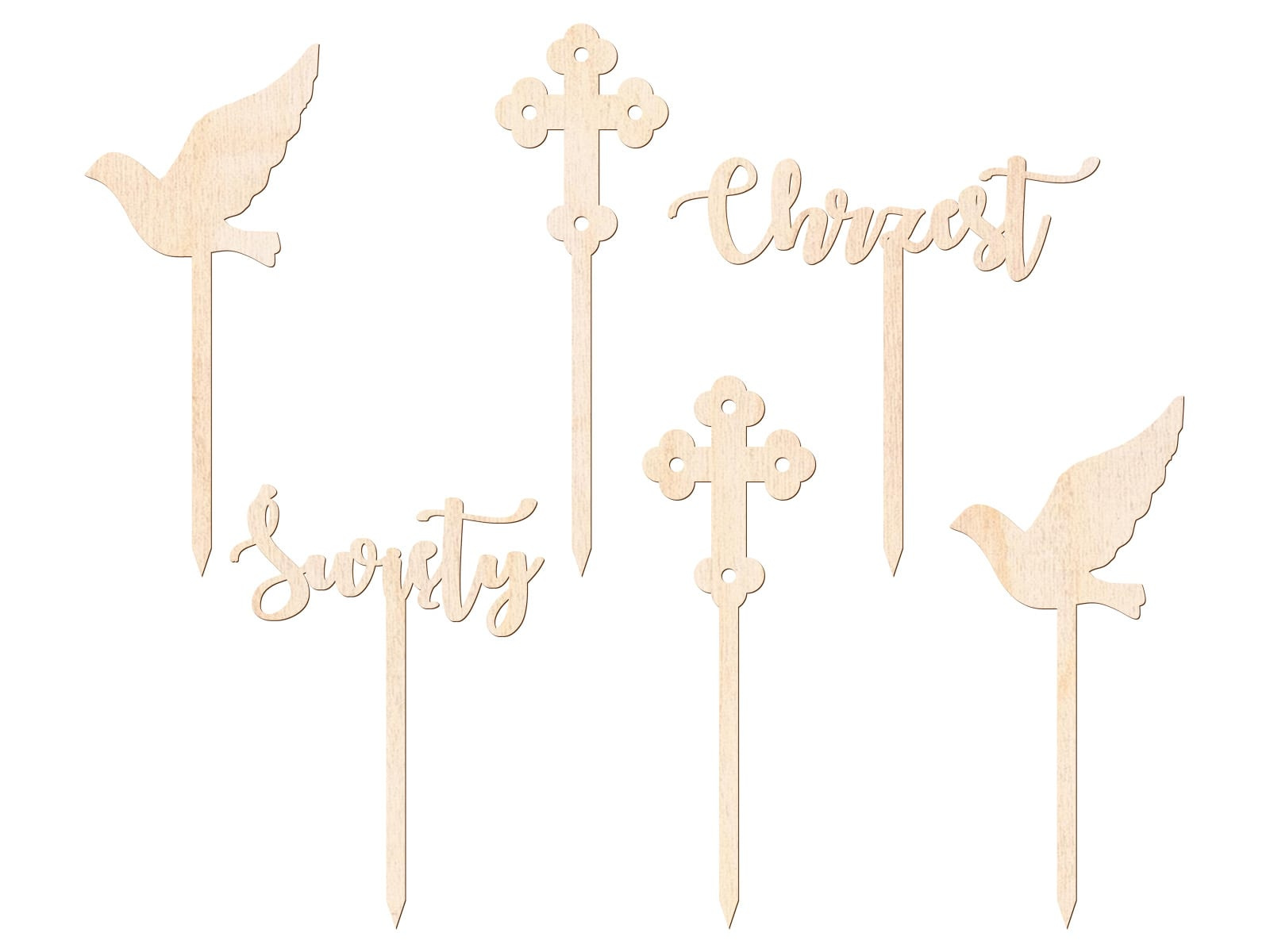 Dekoracje drewniane do muffinek Chrzest Święty - 6 szt.
