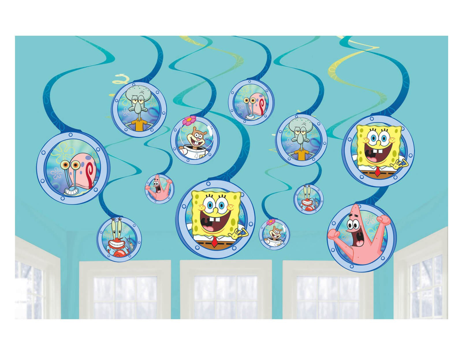 Dekoracja wisząca świderki Spongebob to zestaw 12 sztuk, każda o średnicy 13 cm. Każdy świder jest starannie wykonany i przedstawia ulubione postacie z Bikini Dolne, co na pewno wywoła uśmiech na twarzy każdego dziecka.