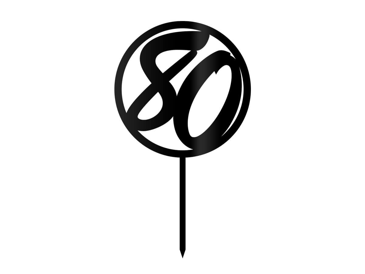 Topper z pleksi czarny na tort 80 urodziny - 1 szt.