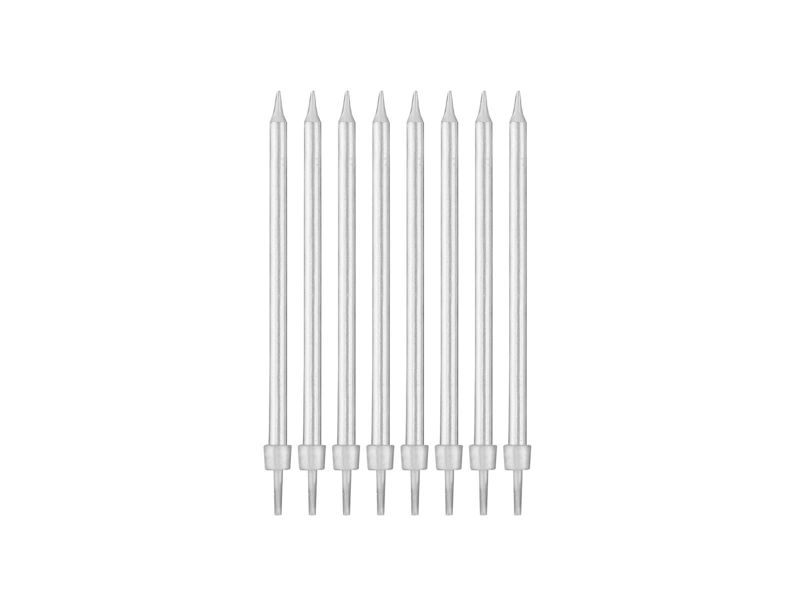 Świeczki urodzinowe srebrne - 10 cm - 8 szt.