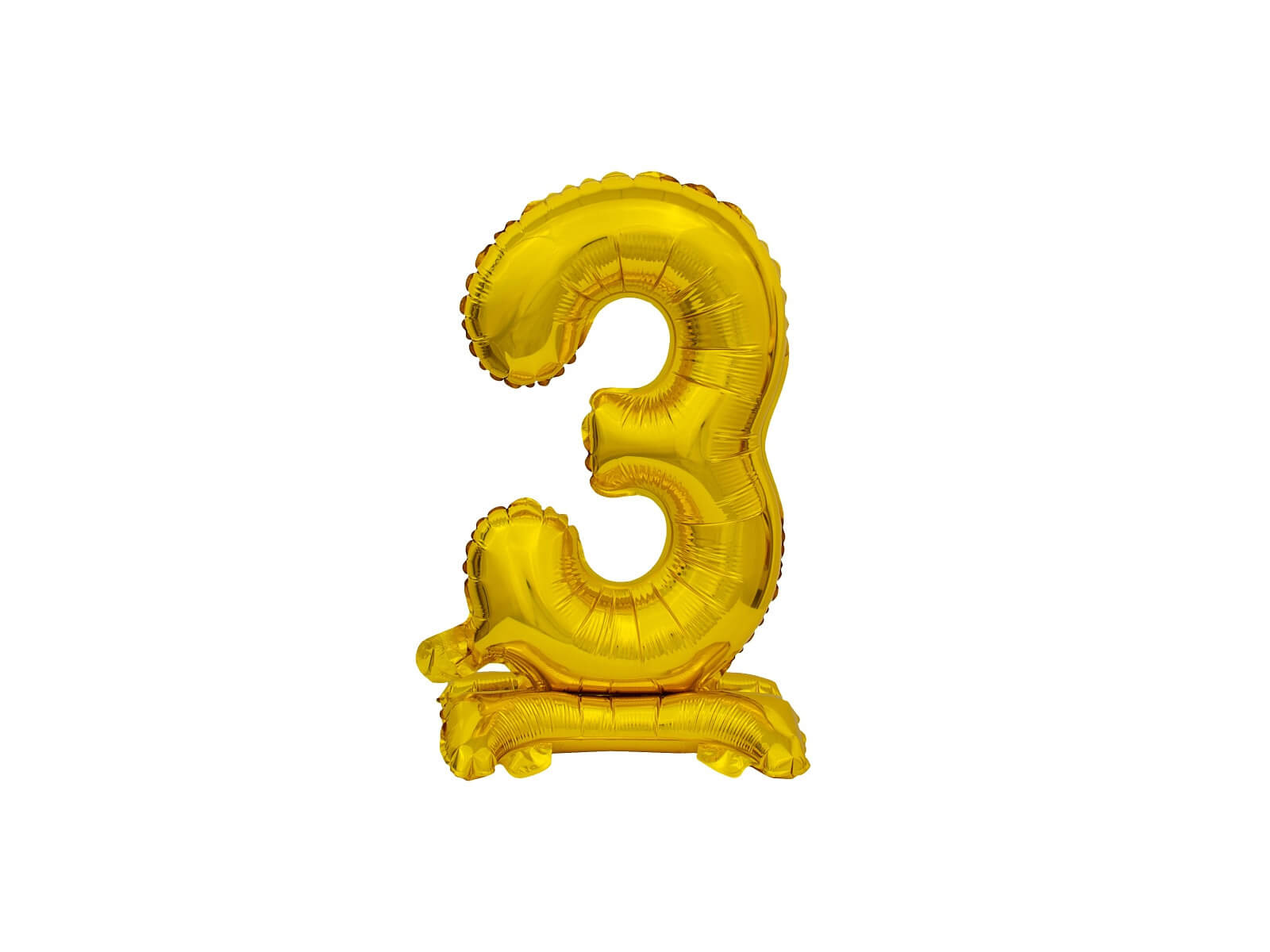 Balon foliowy stojący cyfra 3 złota - 38 cm