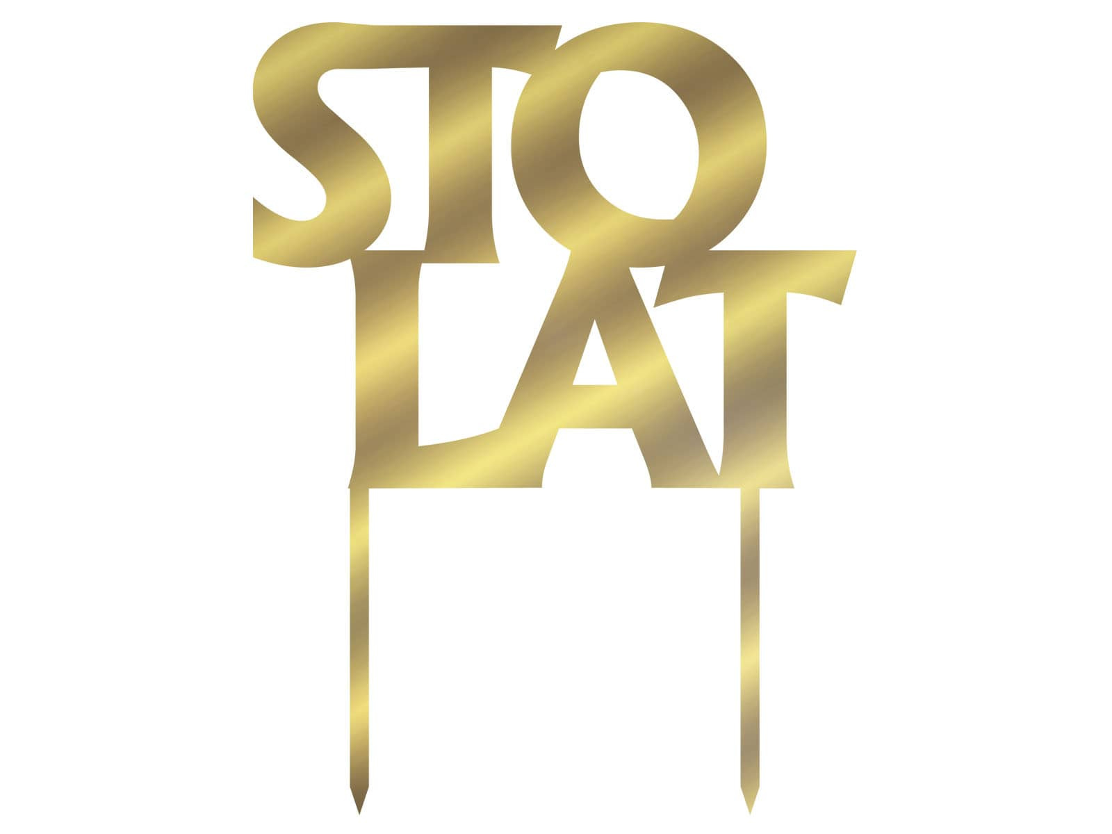 Topper z lustrzanej pleksi złoty na tort Sto Lat - 17 cm