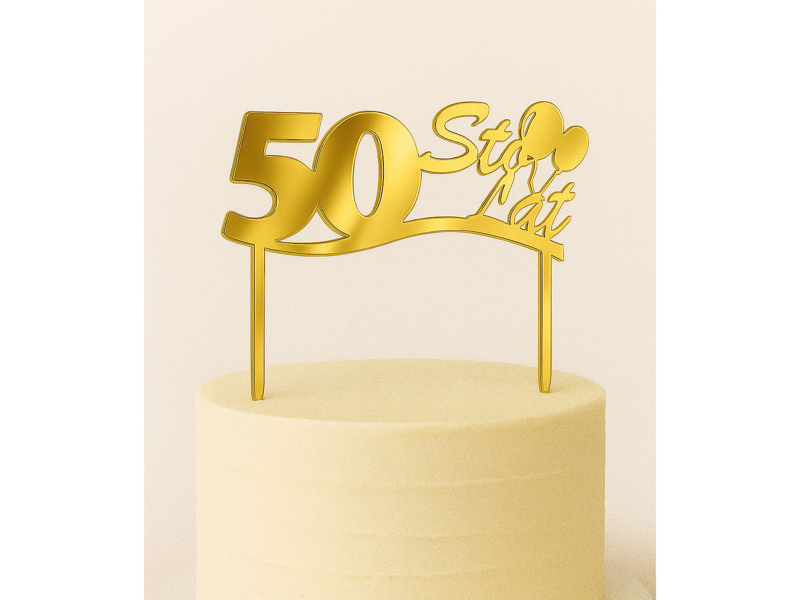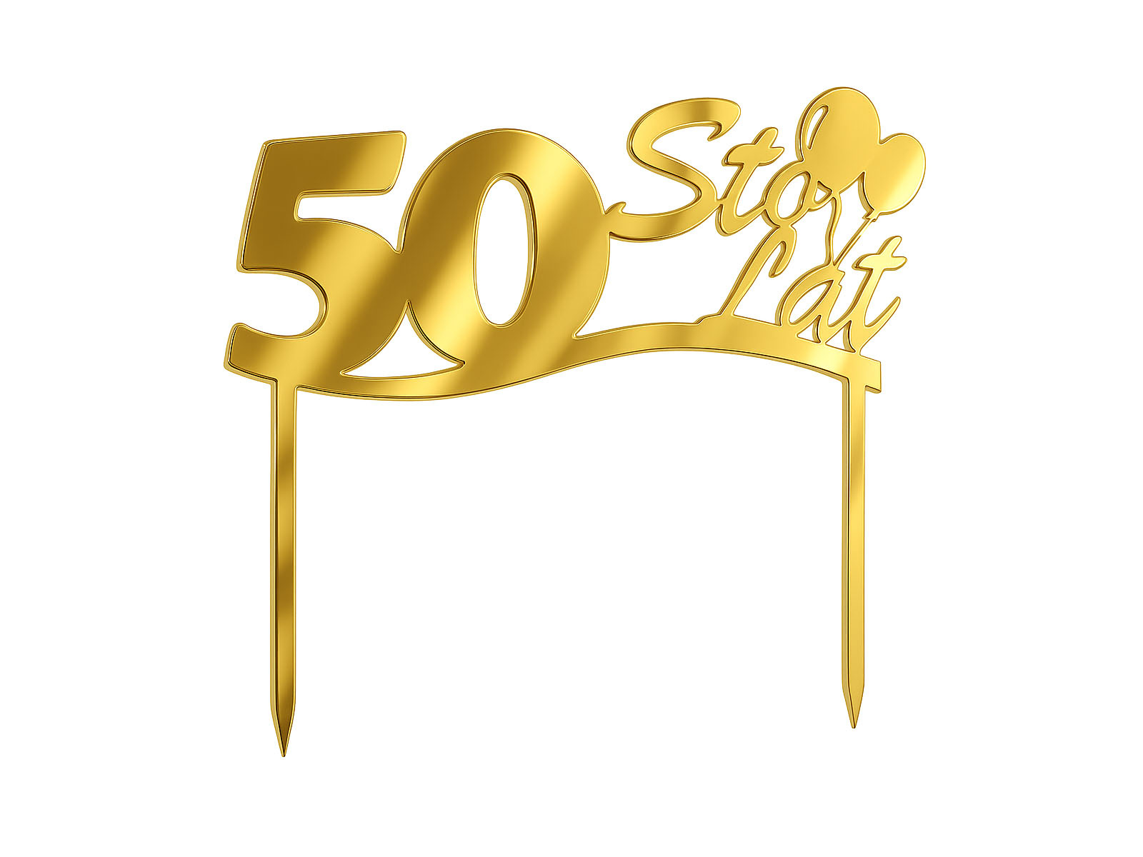 Topper z lustrzanej pleksi złoty na tort 50 urodziny