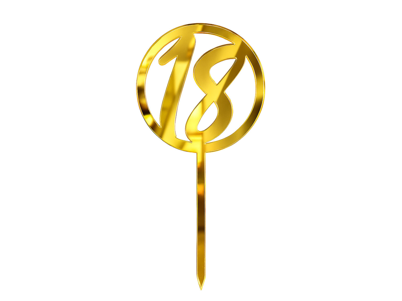 Topper z lustrzanej pleksi złoty na tort 18 urodziny
