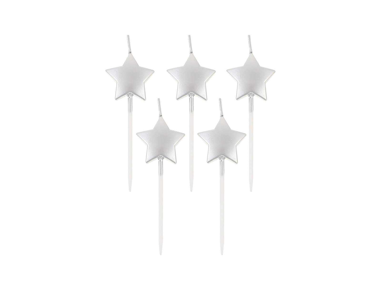 Świeczki pikery Gwiazdki srebrne - 5 szt.