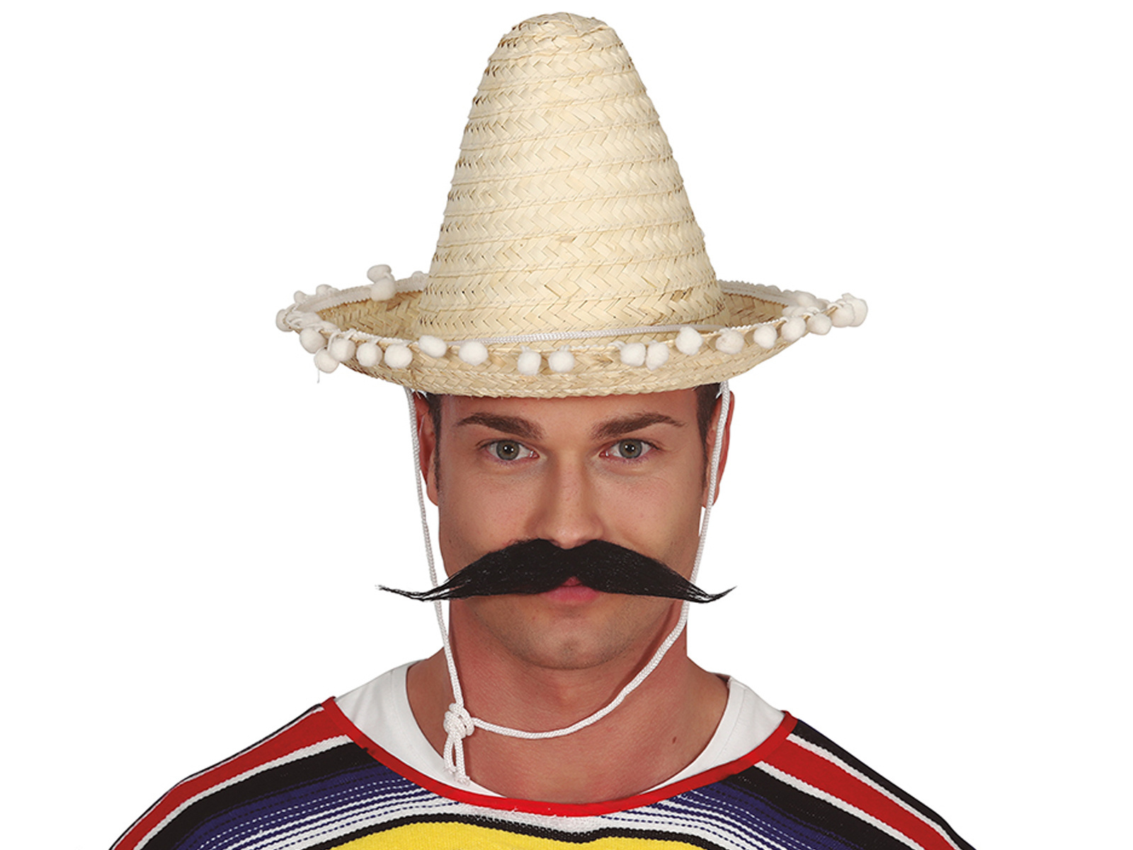 Sombrero meksykańskie słomkowe z pomponikami - 33 cm - 1 szt.