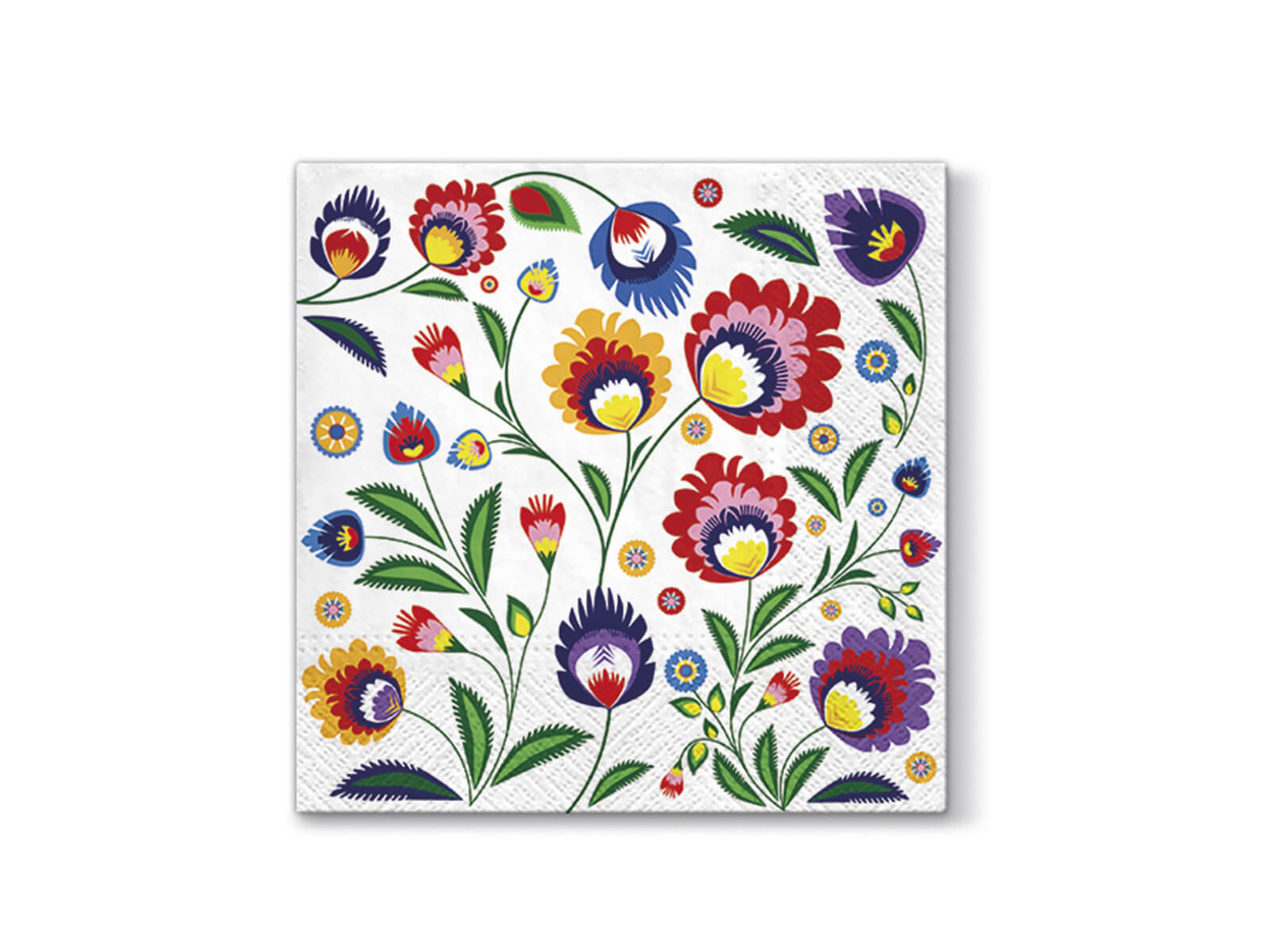 Serwetki z motywem łowickim białe - 33 cm - 20 szt.