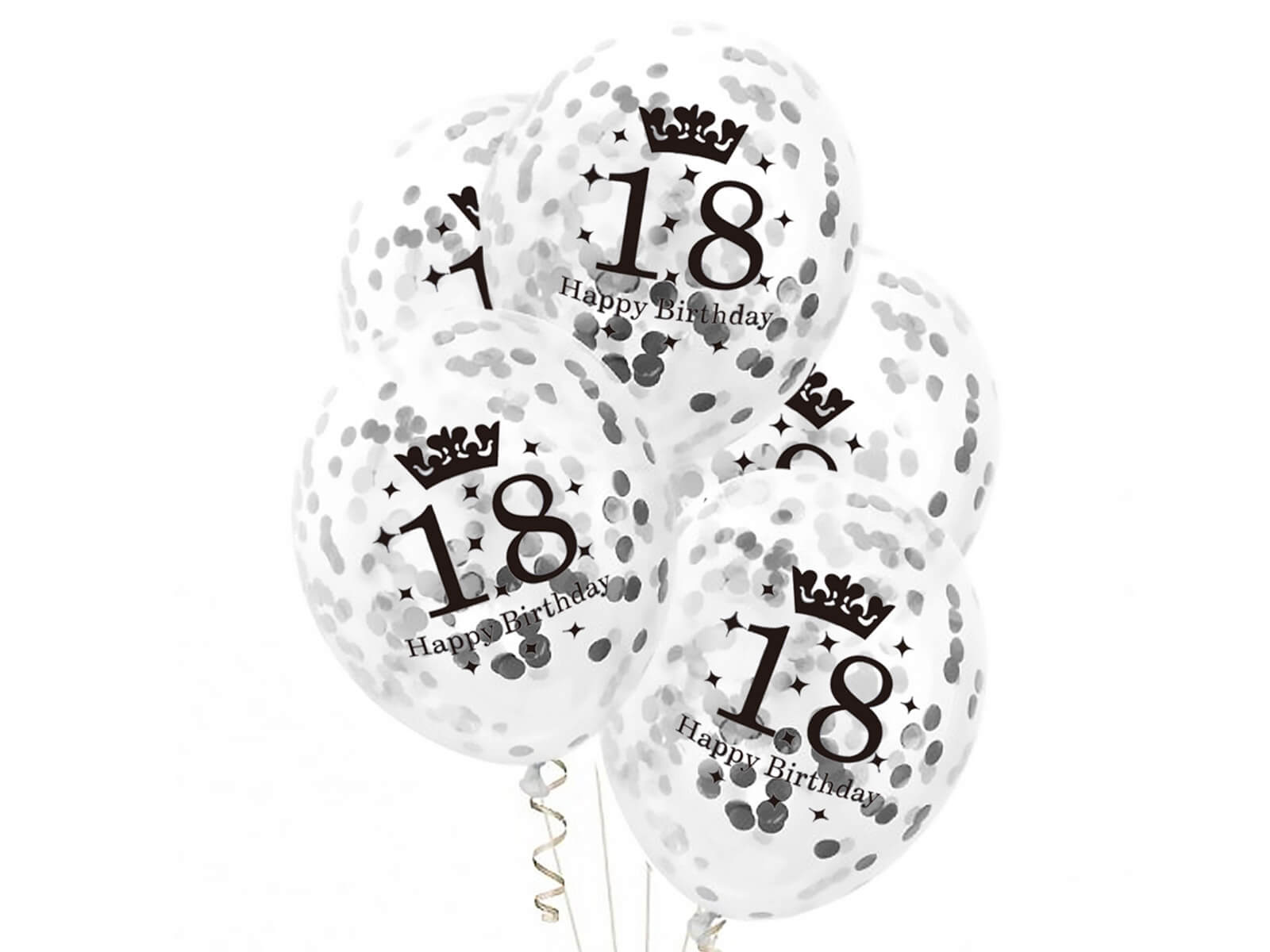 Balony przezroczyste ze srebrnym konfetti na osiemnastkę - 30 cm - 100 szt