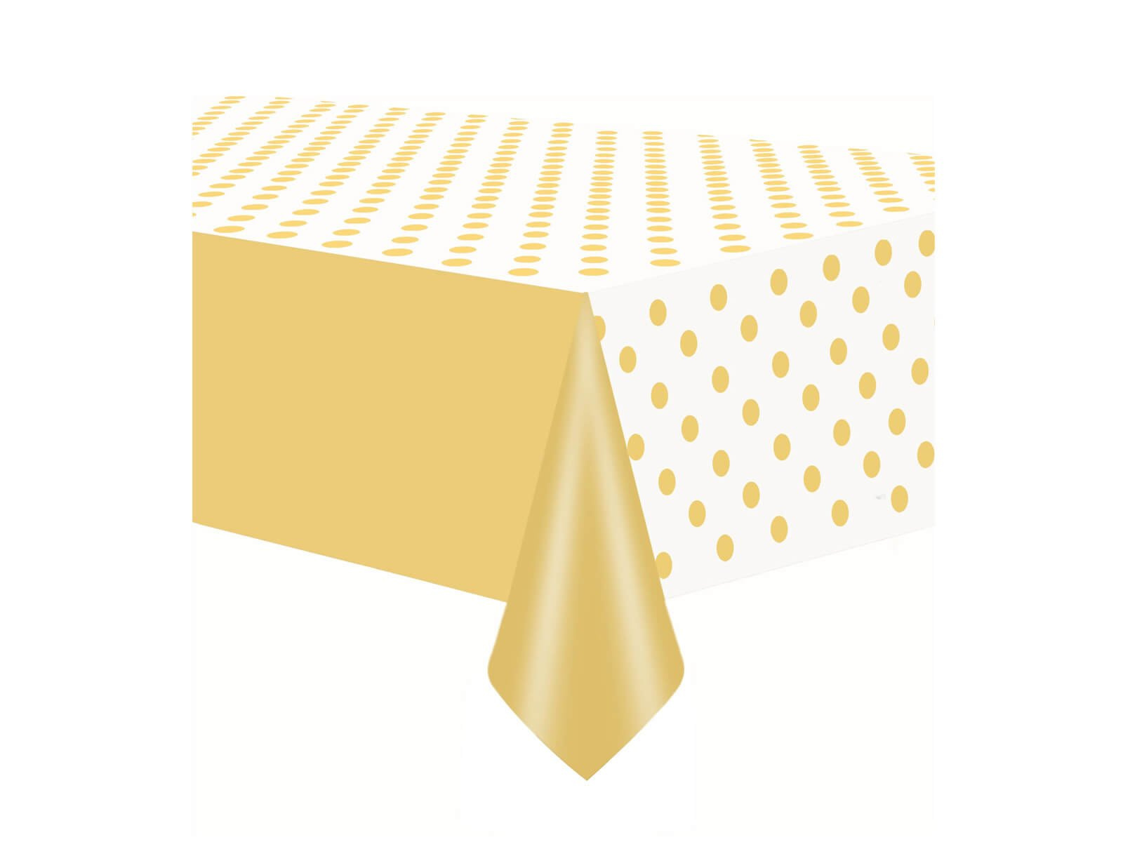 Obrus urodzinowy biały w złote kropki - 137 x 274 cm - 1 szt.