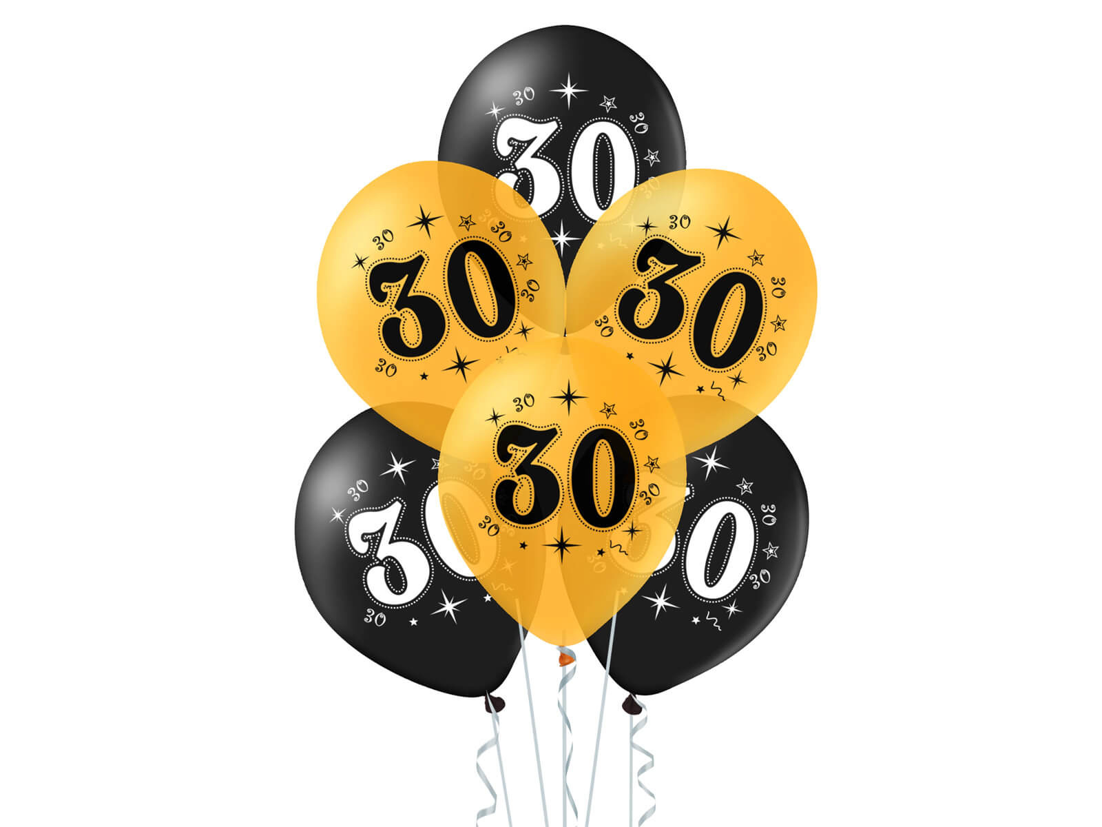 Balony lateksowe z nadrukiem na trzydziestkę - 30 cm - 10 szt.