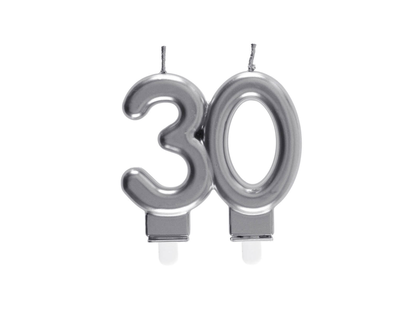 Świeczka na 30-tkę srebrna - 7,5 cm - 1 szt.