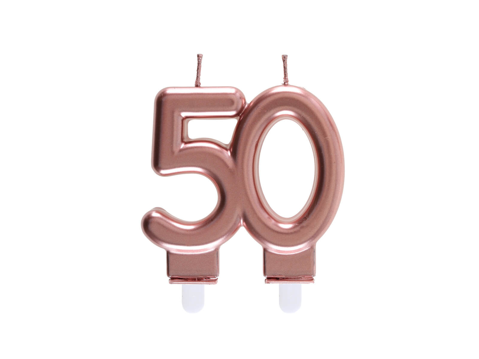 Świeczka na 50-tkę różowe złoto - 7,5 cm - 1 szt.
