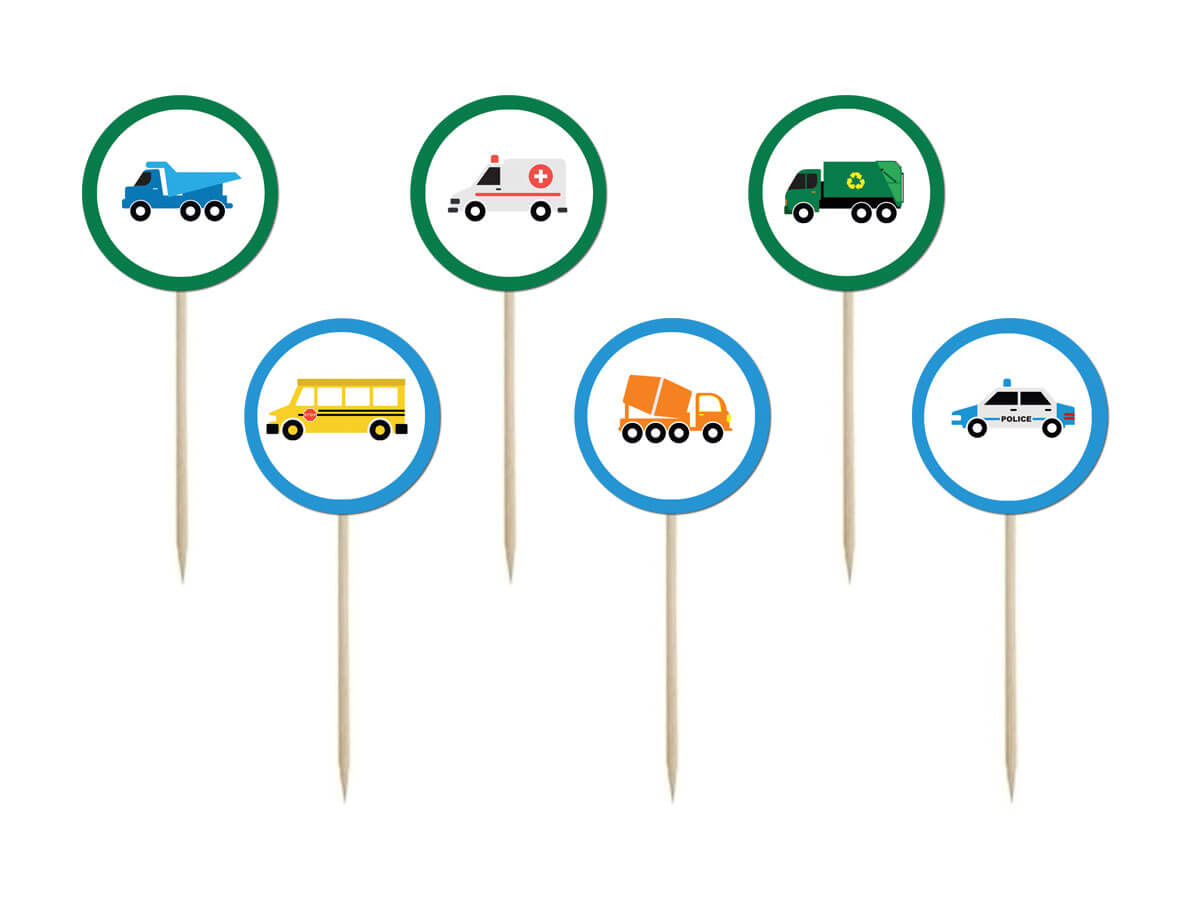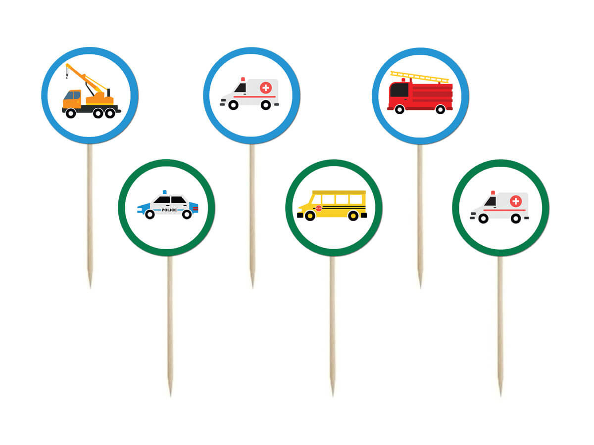 Pikery na tort Samochodziki to zestaw 6 papierowych dekoracji na patyczkach, które w prosty sposób przekształcą tort czy muffinki w dzieło sztuki. Wysokość patyczka wynosi 6,5 cm, a rozmiar kółka to 4 cm. Dekoracje cechują się różnorodnością wzorów, dzięki czemu każdy samochodzik będzie wyjątkowy.