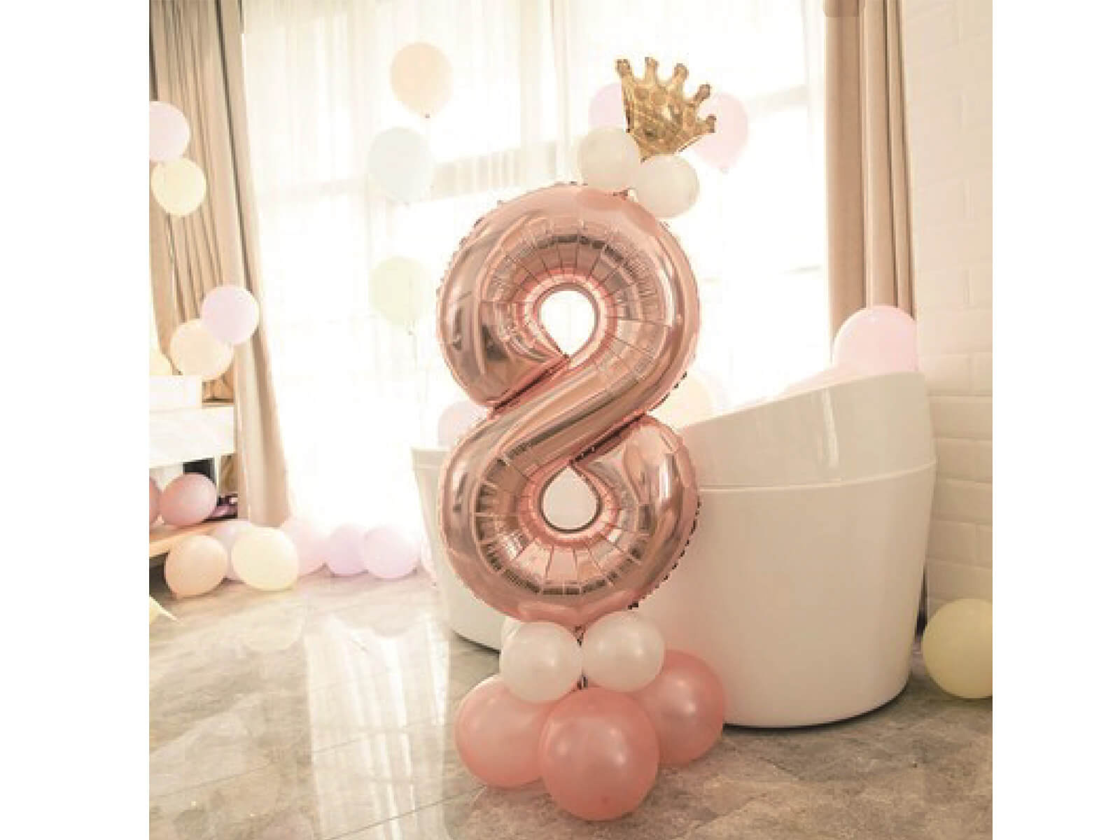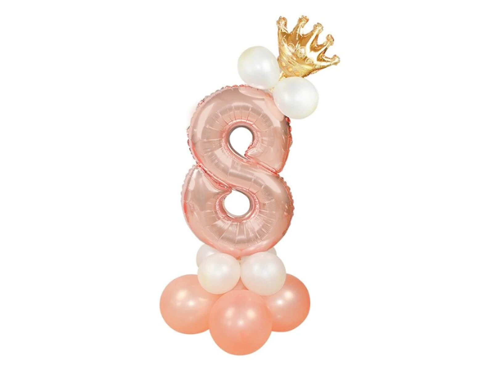 Zestaw balonów z cyfrą osiem różowe złoto - 15 szt.