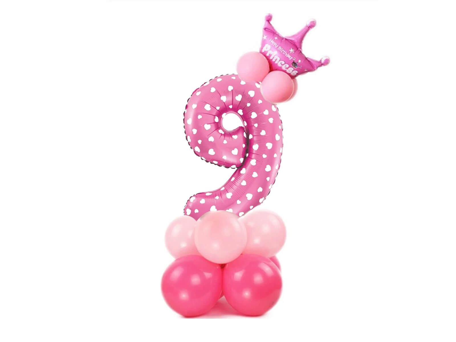 Zestaw balonów z cyfrą dziewięć różowy - 15 szt.