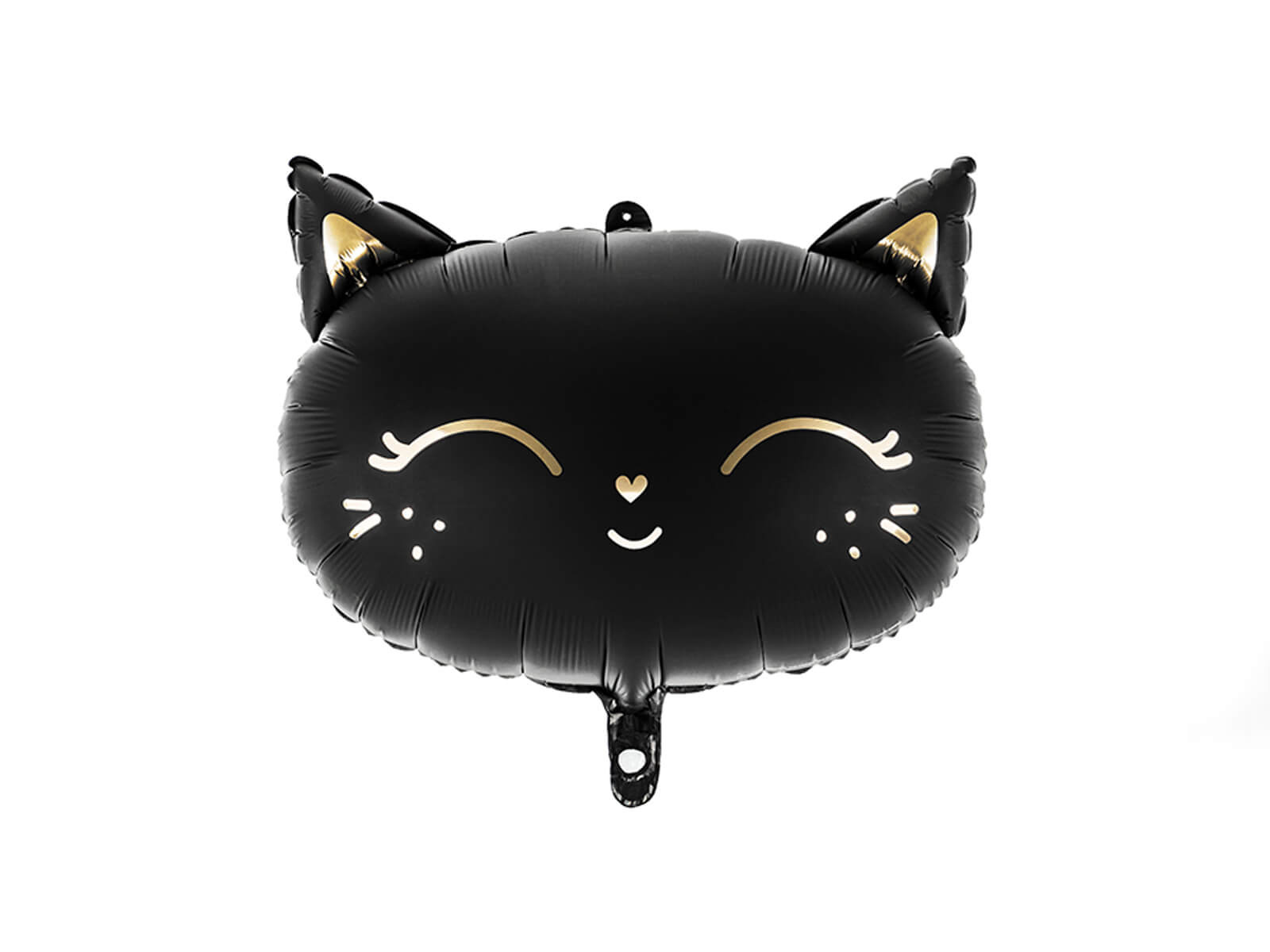 - Balon foliowy w kształcie czarnego kociaka z złotymi metalicznymi elementami, który doda elegancji i stylu każdej imprezie.