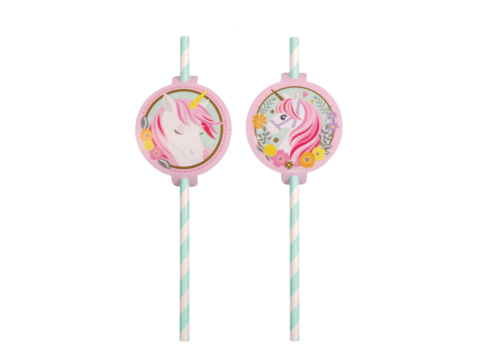 Zestaw zawiera 8 sztuk słomek o długości 19,7 cm, na których znajdują się urocze medale z motywem pastelowych jednorożców. Te słomki to idealny dodatek do kolorowych kubków i talerzyków na urodzinowe przyjęcie Twojego dziecka.