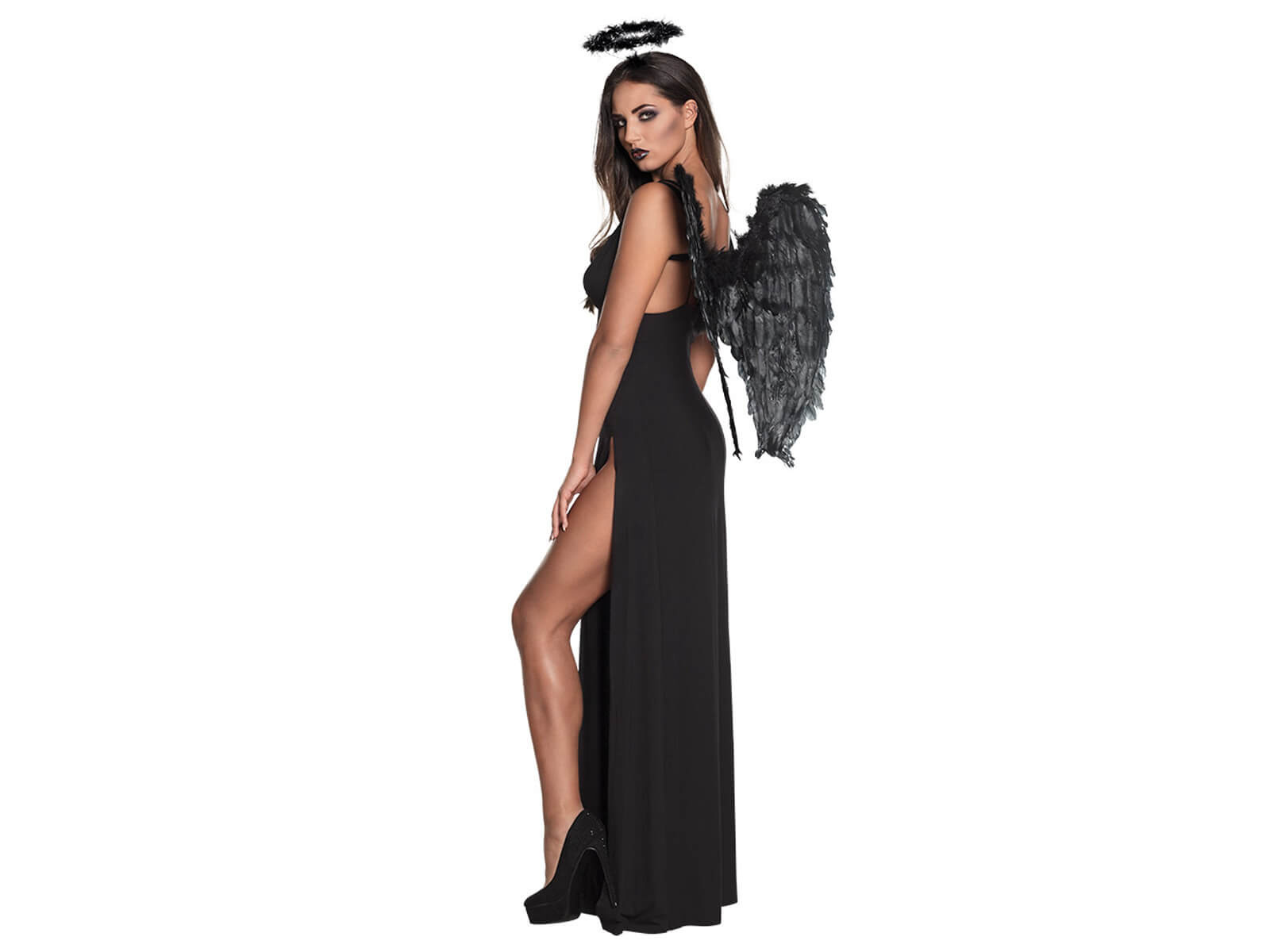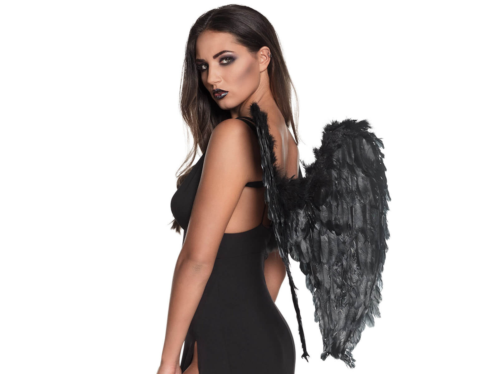 Dzięki wymiarom 65 x 65 cm skrzydła są imponujące, lecz zarazem kompaktowe, co pozwala na swobodne poruszanie się na przyjęciu czy inne wydarzenie. Głęboka czerń tkaniny dodaje tajemniczości i elegancji, idealnie komponując się z różnymi rodzajami kostiumów, takimi jak upadły anioł, czarownica czy gotycki król.