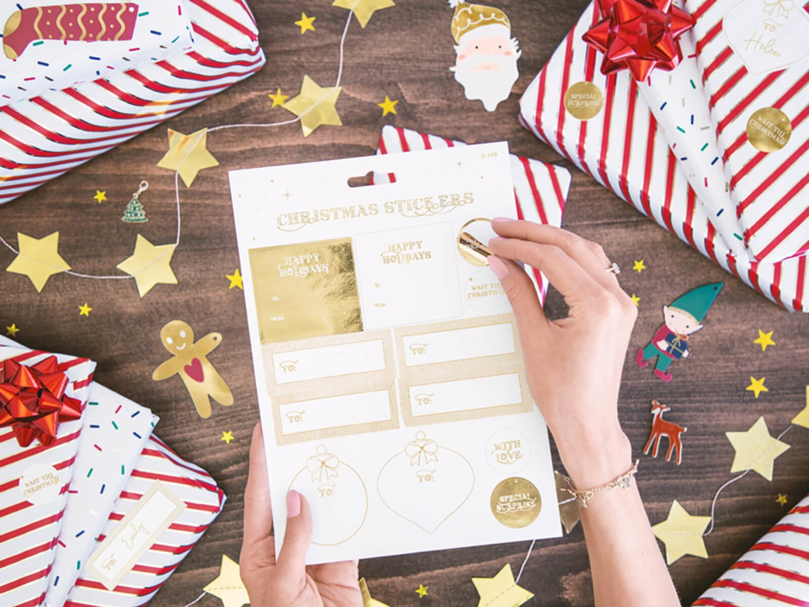 Dodaj swoim świątecznym chwilom odrobiny luksusu – złote motywy na naklejkach perfekcyjnie komponują się z każdym stylem i kolorystyką. Niech każdy detal świątecznych przygotowań będzie wyjątkowy dzięki naszym naklejkom.