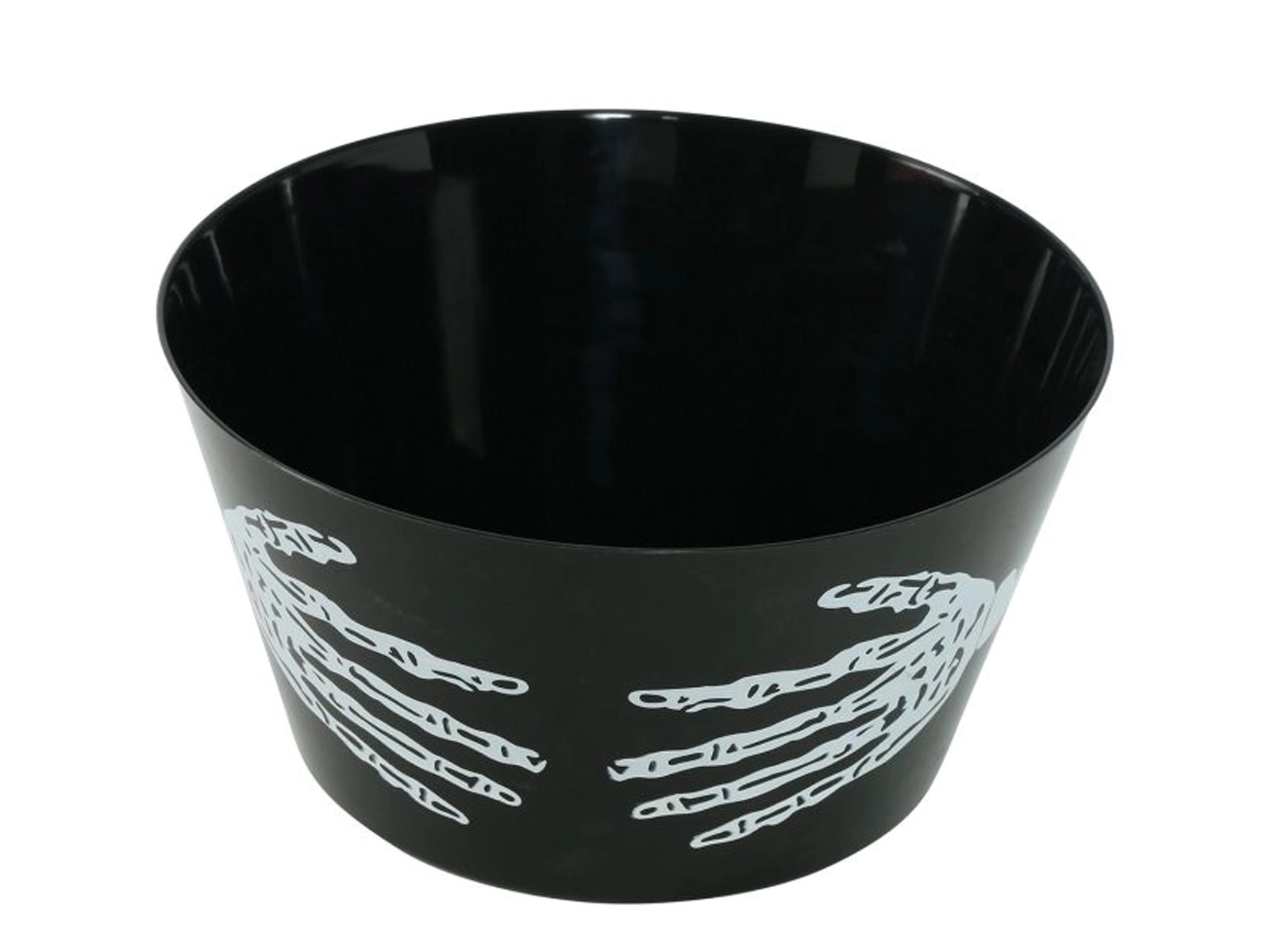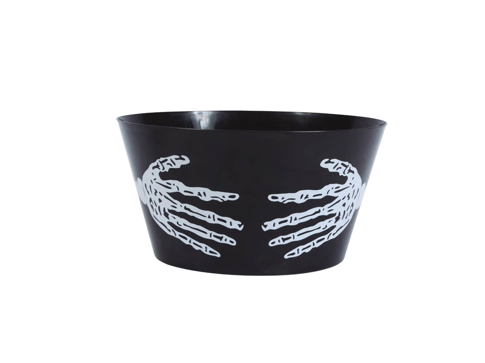 Przedstawiamy idealny dodatek do Twojej halloweenowej dekoracji stołu: czarna miska z oryginalnymi dłońmi szkieletora, zdolna przyciągnąć wzrok każdego gościa. Ta niezwykła miska na słodycze jest nie tylko praktycznym, ale również estetycznie dopracowanym elementem, który wprowadzi dopracowany, spooky klimat do Twojego domu.