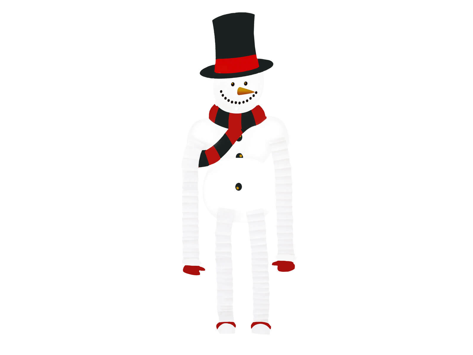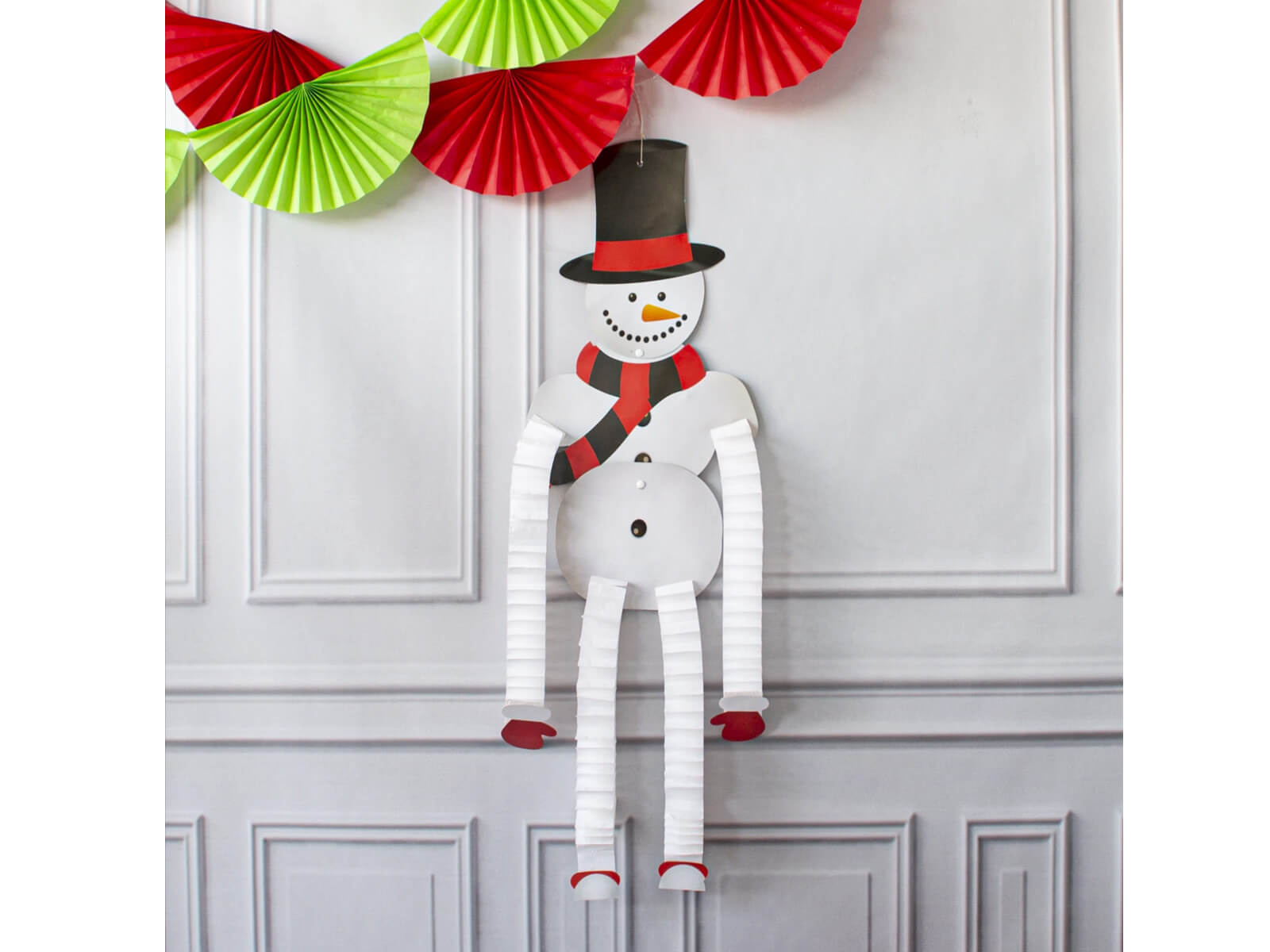 Wykonanie z papieru oraz bibuły sprawia, że bałwan posiada nietuzinkowy trójwymiarowy efekt dzęki harmonijkowo ułożonym nogom i rękom. Idealny do powieszenia w oknie, na drzwiach czy też nad kominkiem jako centralny punkt świątecznych dekoracji. Doskonale sprawdzi się także w przestrzeniach komercyjnych, takich jak sklepy czy restauracje, dodając im unikatowego, świątecznego charakteru.