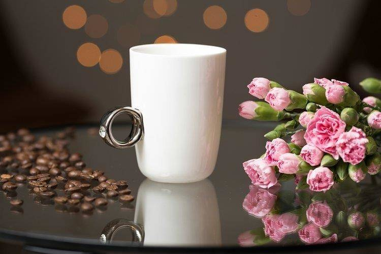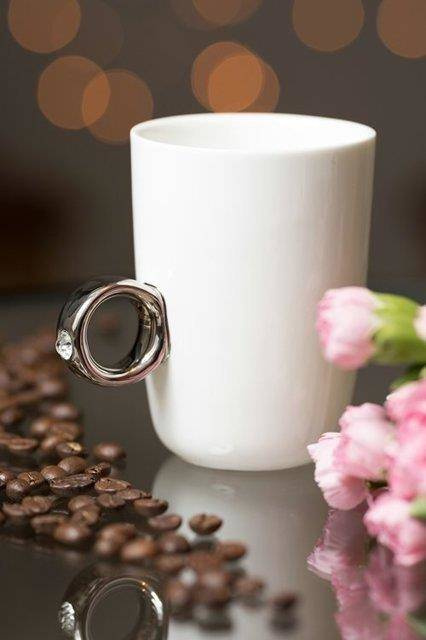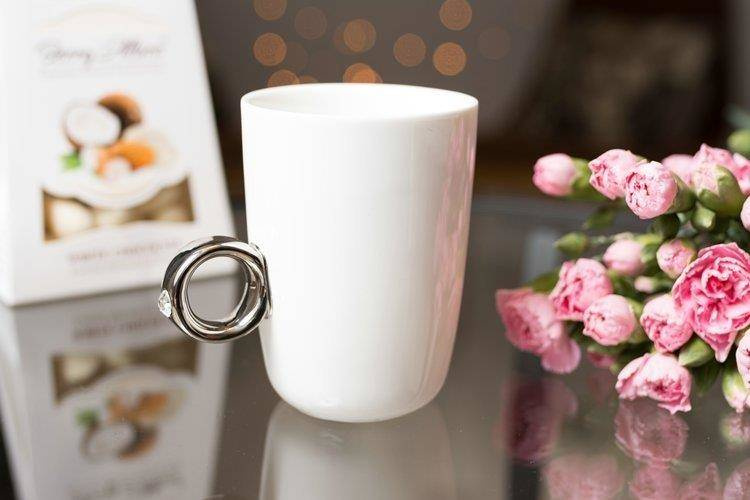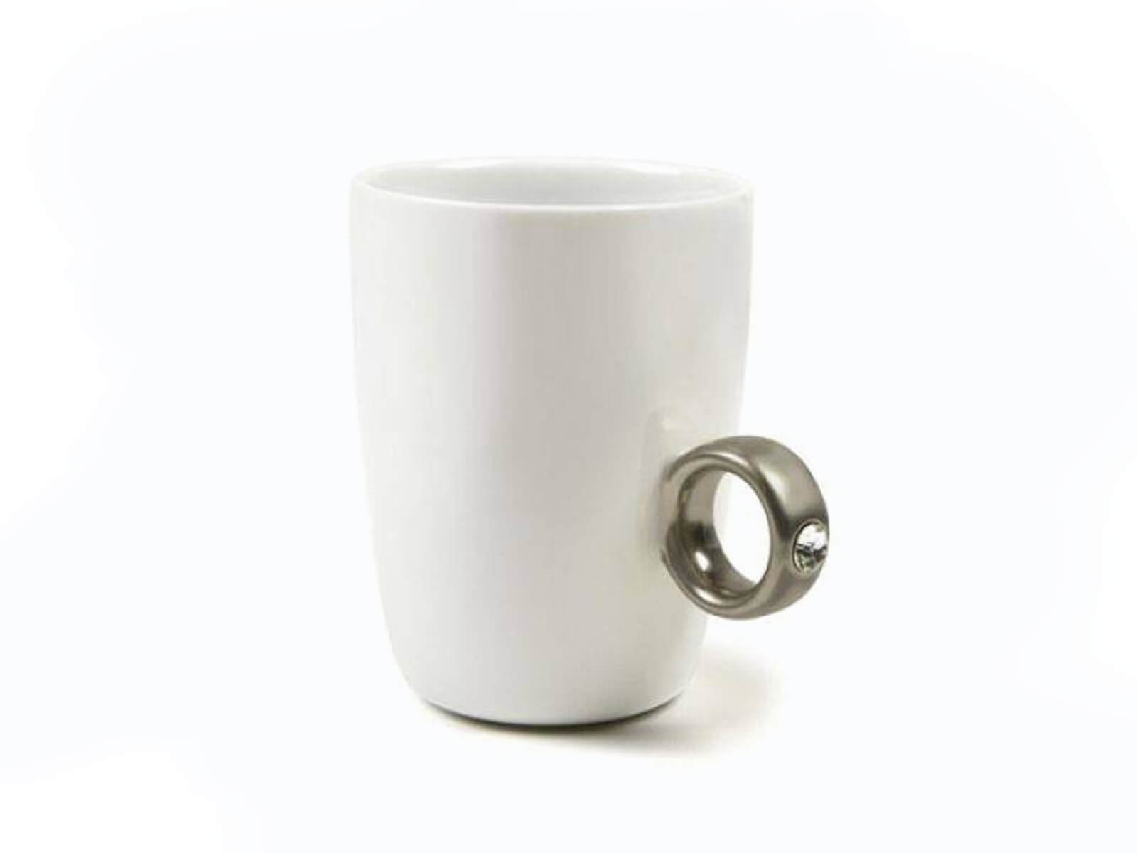 Dwukaratowy kubek - biały ze srebrnym pierścieniem