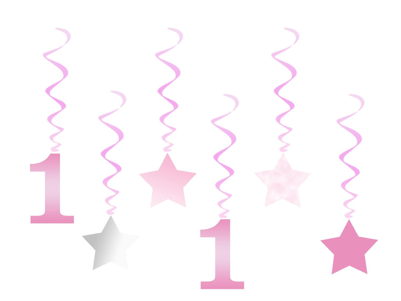 Dekoracja wisząca na roczek Gwiazdki różowe - 6 szt.