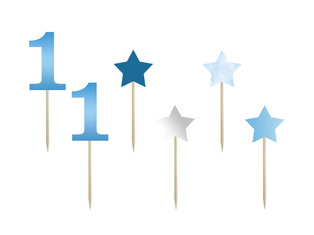 Pikery na roczek Gwiazdki błękitne - 7 cm - 6 szt.