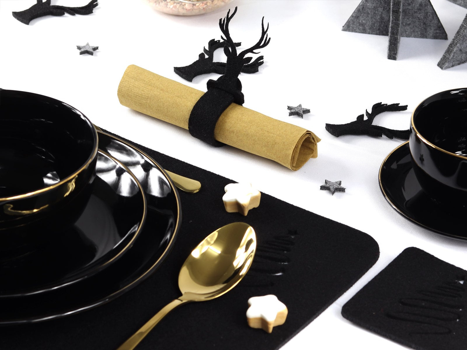 Przynosząc magię świąt na stół, te wyjątkowe podstawki pod kubki z motywem renifera są idealnym dodatkiem do Twojej zastawy świątecznej. Wykonane z 4mm czarnego filcu, każda podkładka jest nie tylko praktyczna, ale i stylowa, dodając uroku każdej świątecznej aranżacji. Sprawdzą się zarówno jako element dekoracyjny, jak i funkcjonalny, chroniąc powierzchnię stołu przed zarysowaniami i plamami.