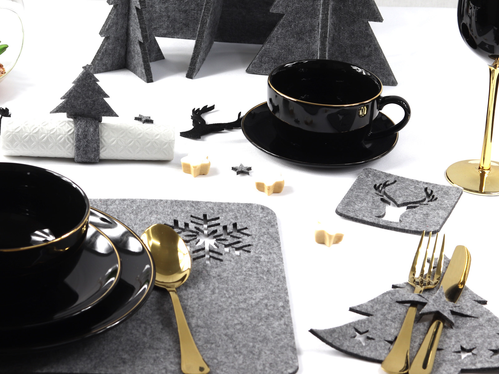 Zapakowane w komplecie dwie sztuki, te etui mogą być również fantastycznym pomysłem na prezent. Idealnie wpisują się w atmosferę świąt i są praktycznym, ale jednocześnie niebanalnym dodatkiem do świątecznych dekoracji. Spraw, by Twój stół zyskał na wyjątkowości dzięki tym efektownym etui na sztućce z filcu!