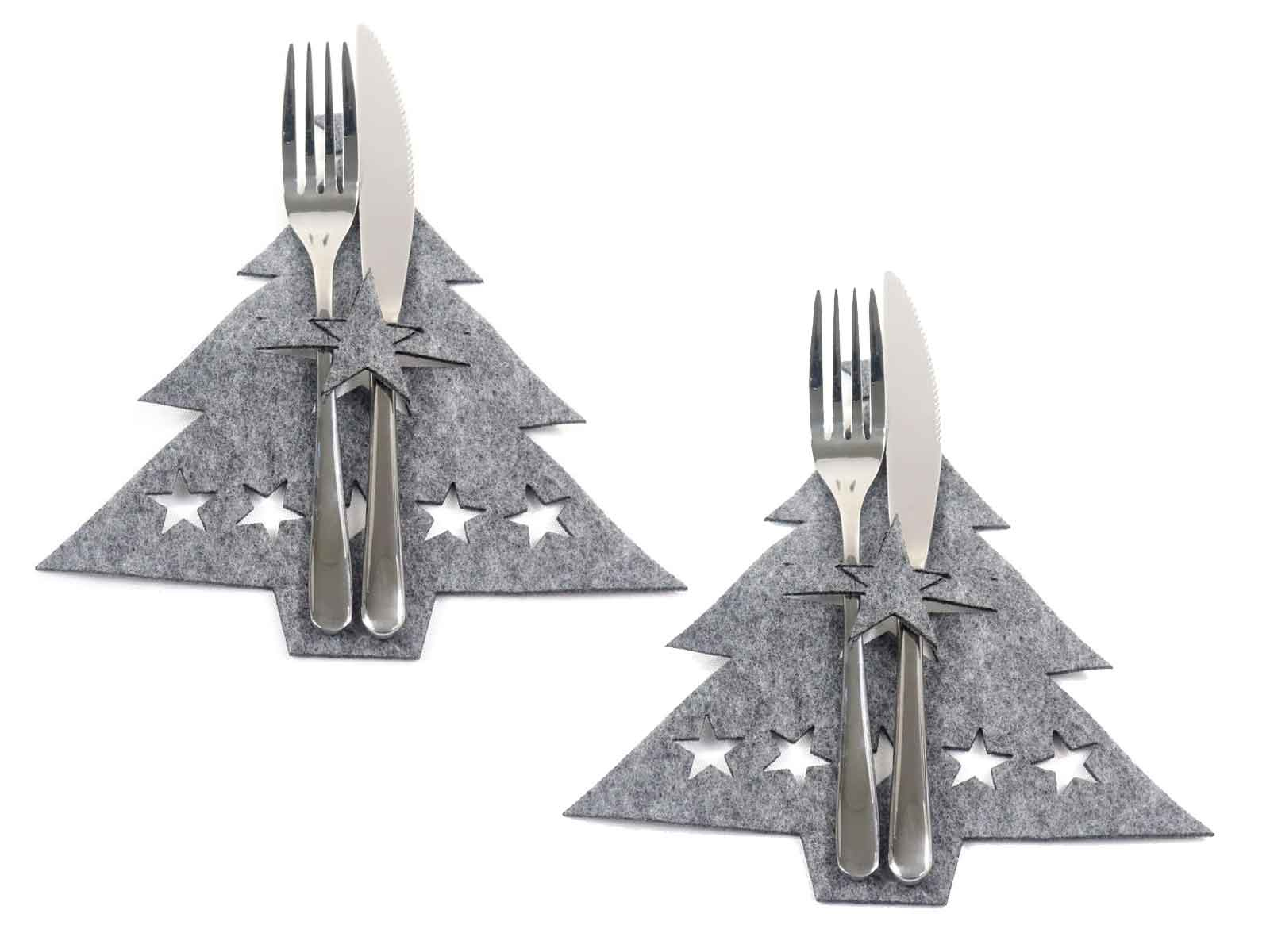 Etui na sztućce z miękkiego filcu - Choinka - 2 szt.