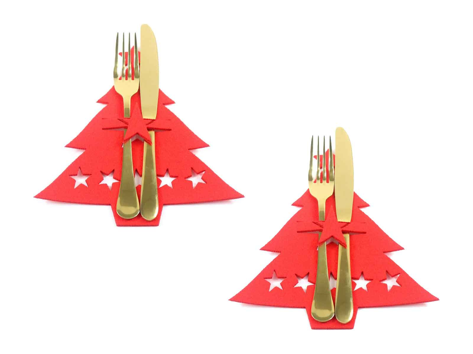 Etui na sztućce z miękkiego filcu - Choinka - 2 szt.