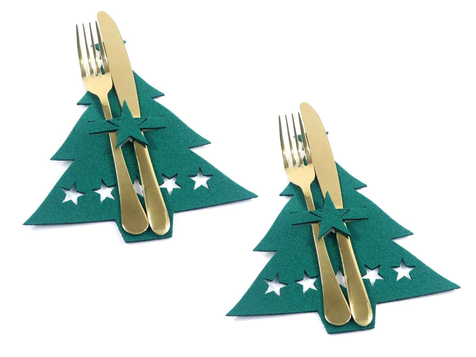 Etui na sztućce z miękkiego filcu - Choinka - 2 szt.