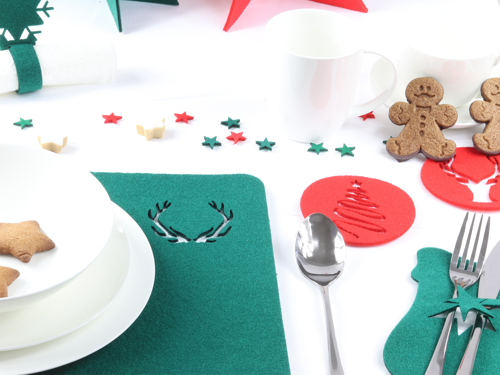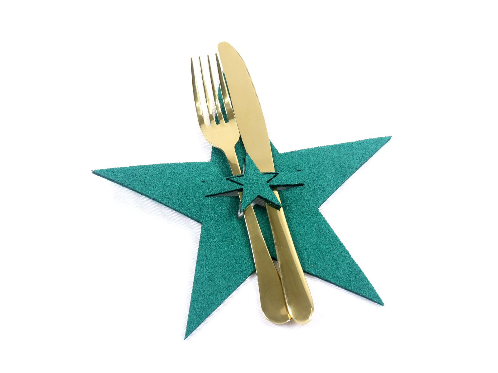 Zapoznaj się z naszym niezwykle praktycznym i efektownym dodatkiem, który uświetni każde bożonarodzeniowe przyjęcie! Prezentujemy etui na sztućce, wykonane z 4 mm grubego, zielonego filcu. Każde z nich zostało ozdobione motywem gwiazdy, dodającym wyjątkowego charakteru i świątecznego nastroju.