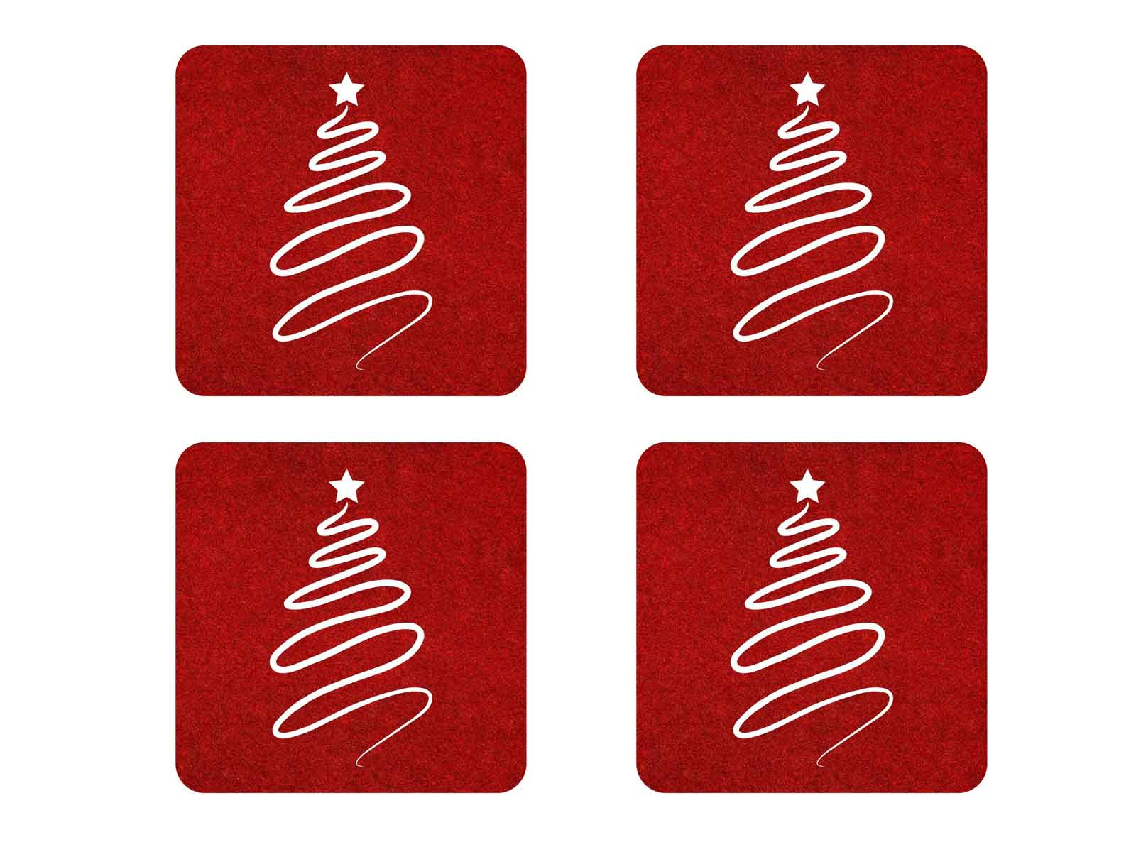 Podstawka kwadratowa pod kubek - Choinka - 10 cm - 4 szt.