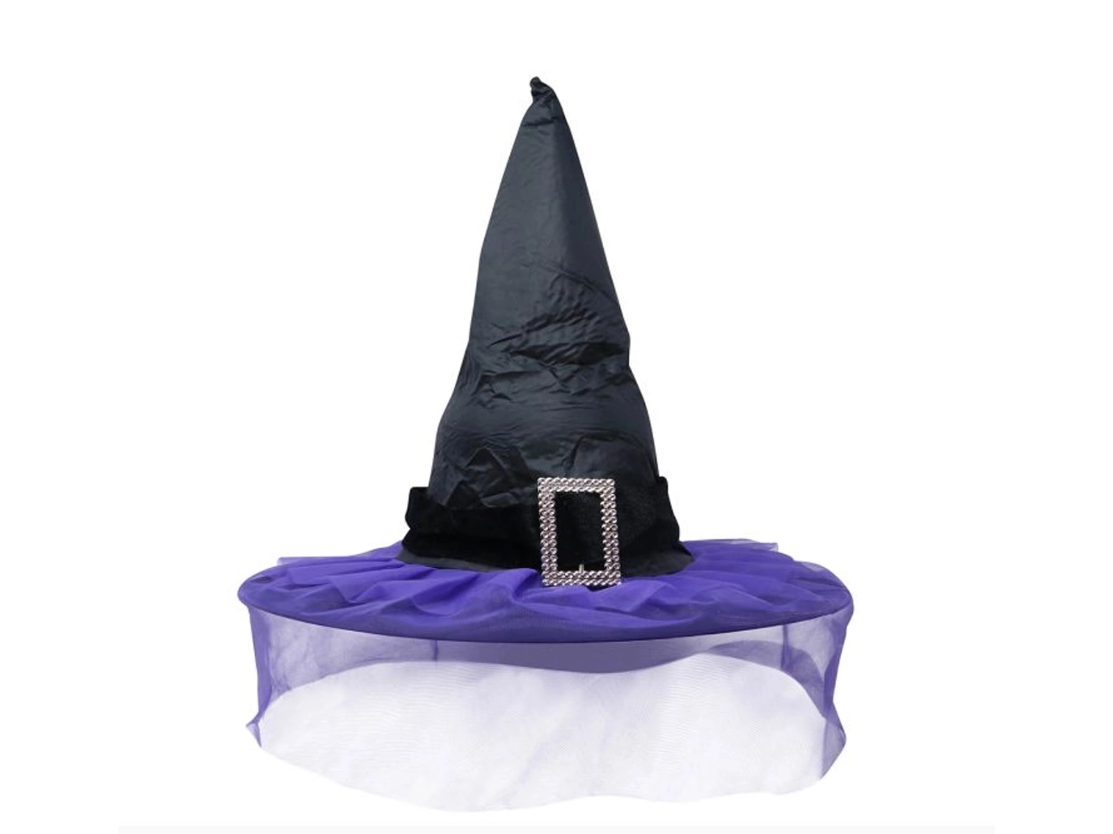 Kapelusz czarownicy z fioletowym woalem na Halloween - 1 szt.
