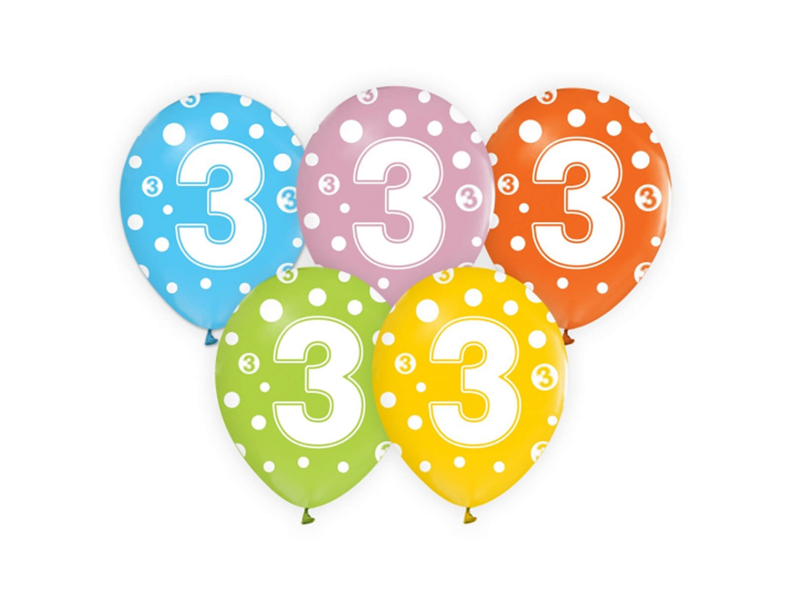 Balony lateksowe z cyfrą 3 - mix - 30 cm - 5 szt.