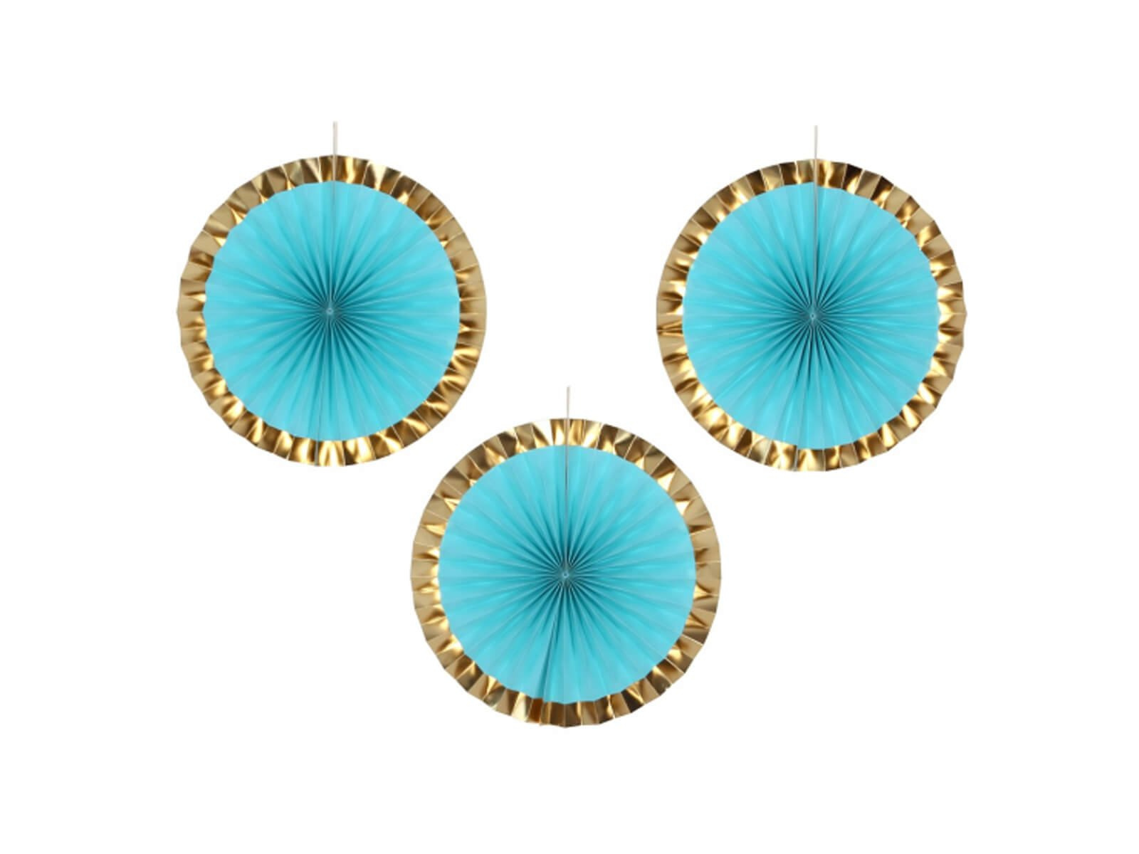 Rozetki wiszące błękitno-złote - 40 cm - 3 szt.