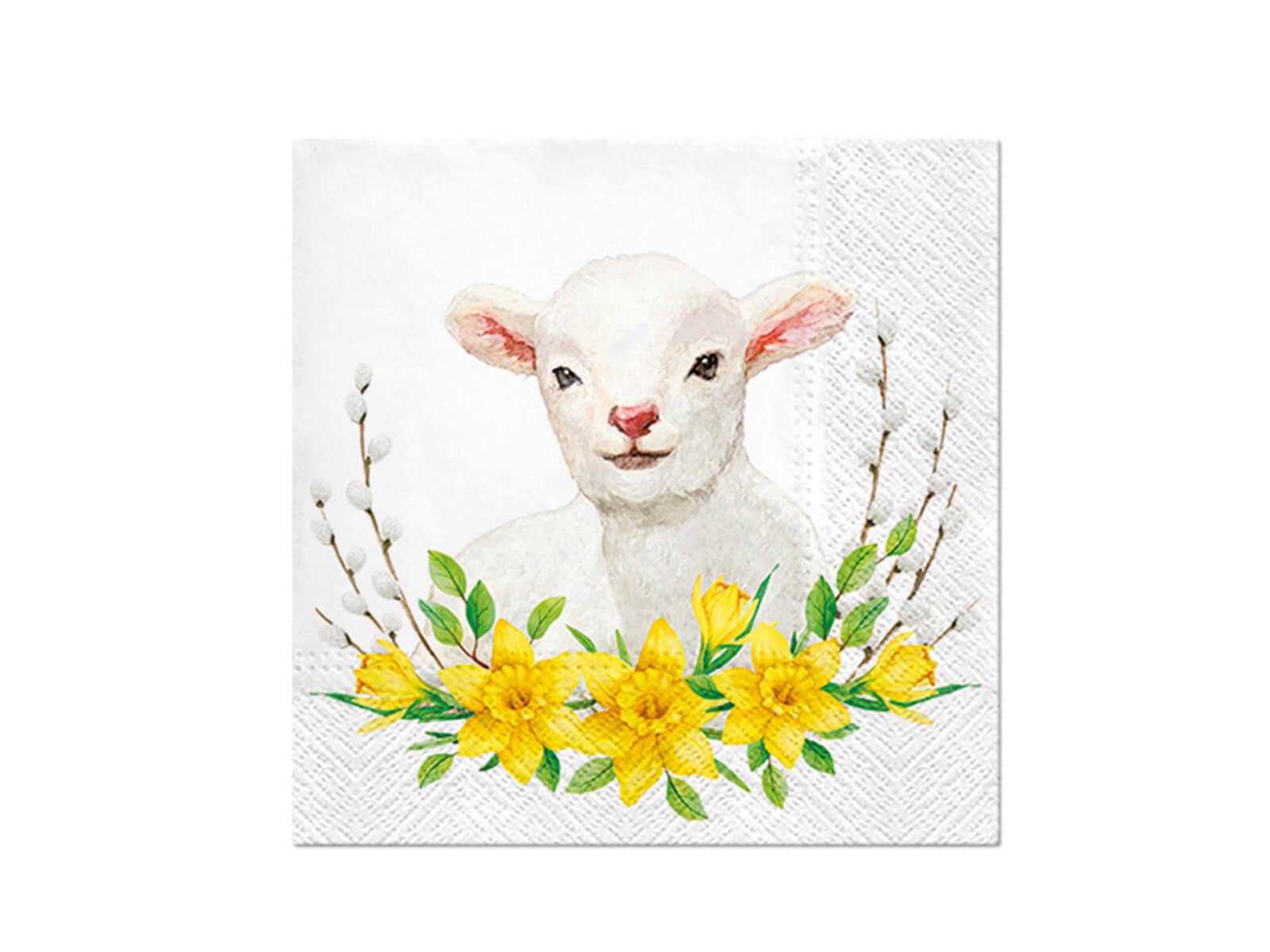 Serwetki wielkanocne Baranek z żonkilami - 33 cm - 20 szt.