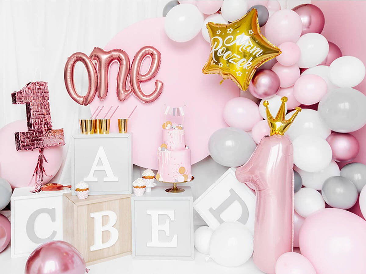 Szukasz czegoś niesamowitego, co pomoże Ci uczcić wyjątkową uroczystość w Twoim życiu? Nasz balon foliowy z numerem jeden w koronie to idealna dekoracja na tę okazję! Ten metalizowany balon foliowy przedstawia elegancką jasnoróżową cyfrę "1" z złotą koroną. Przyciągający wzrok balon ma wymiary 30 cm x 90 cm i jest wyposażony w specjalne uchwyty ułatwiające montaż. Idealny jako dekoracja niespodzianka na nadchodzące przyjęcie urodzinowe. Nie będziesz rozczarowany tym pięknym elementem dekoracyjnym! Zdobądź swój własny balon foliowy cyfra 1 już dziś - nie czekaj ani chwili dłużej, aby przenieść swój wystrój na wyższy poziom.