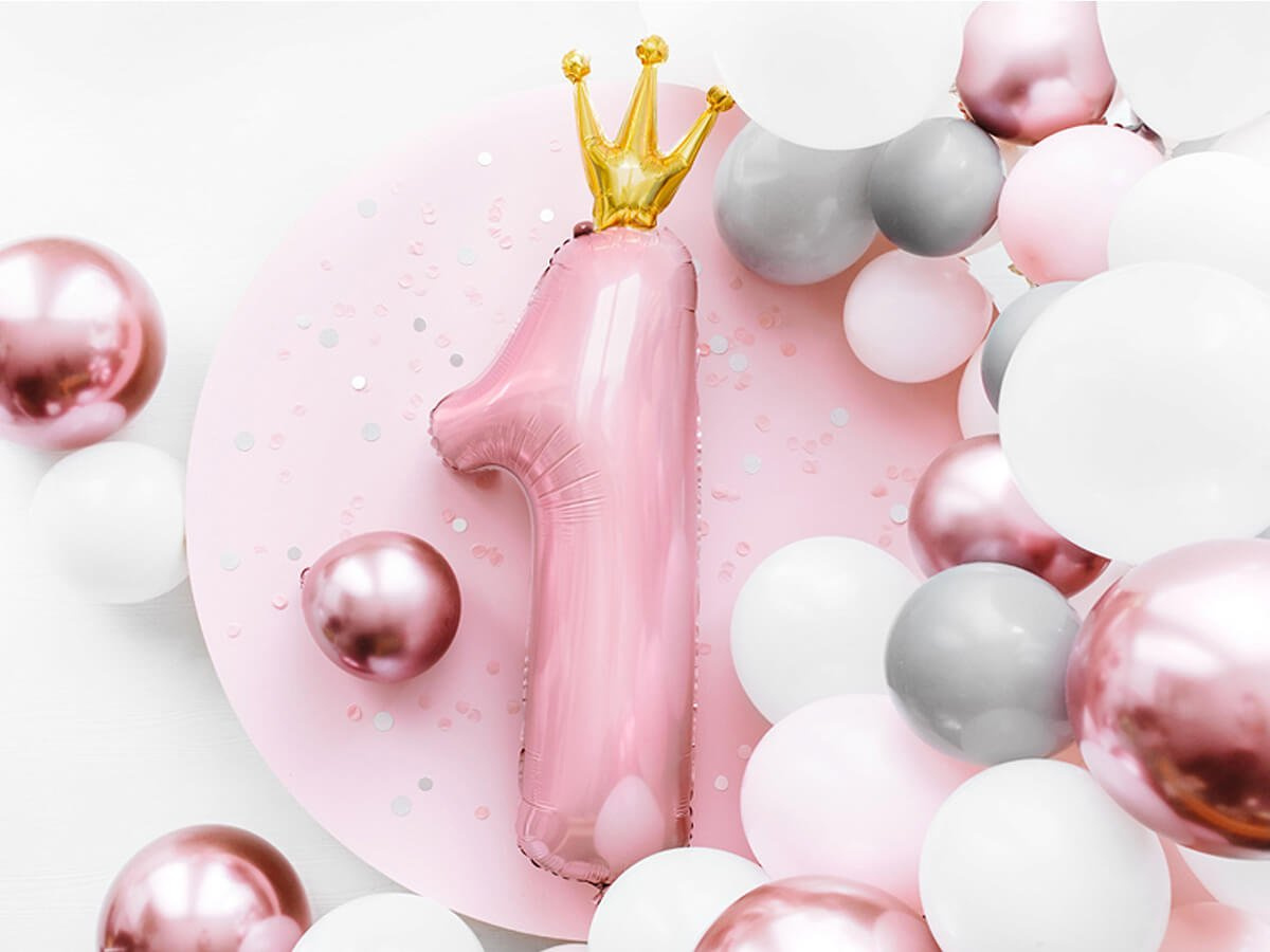 Balon foliowy cyfra 1 w koronie jasnoróżowy - 90 cm - 1 szt.