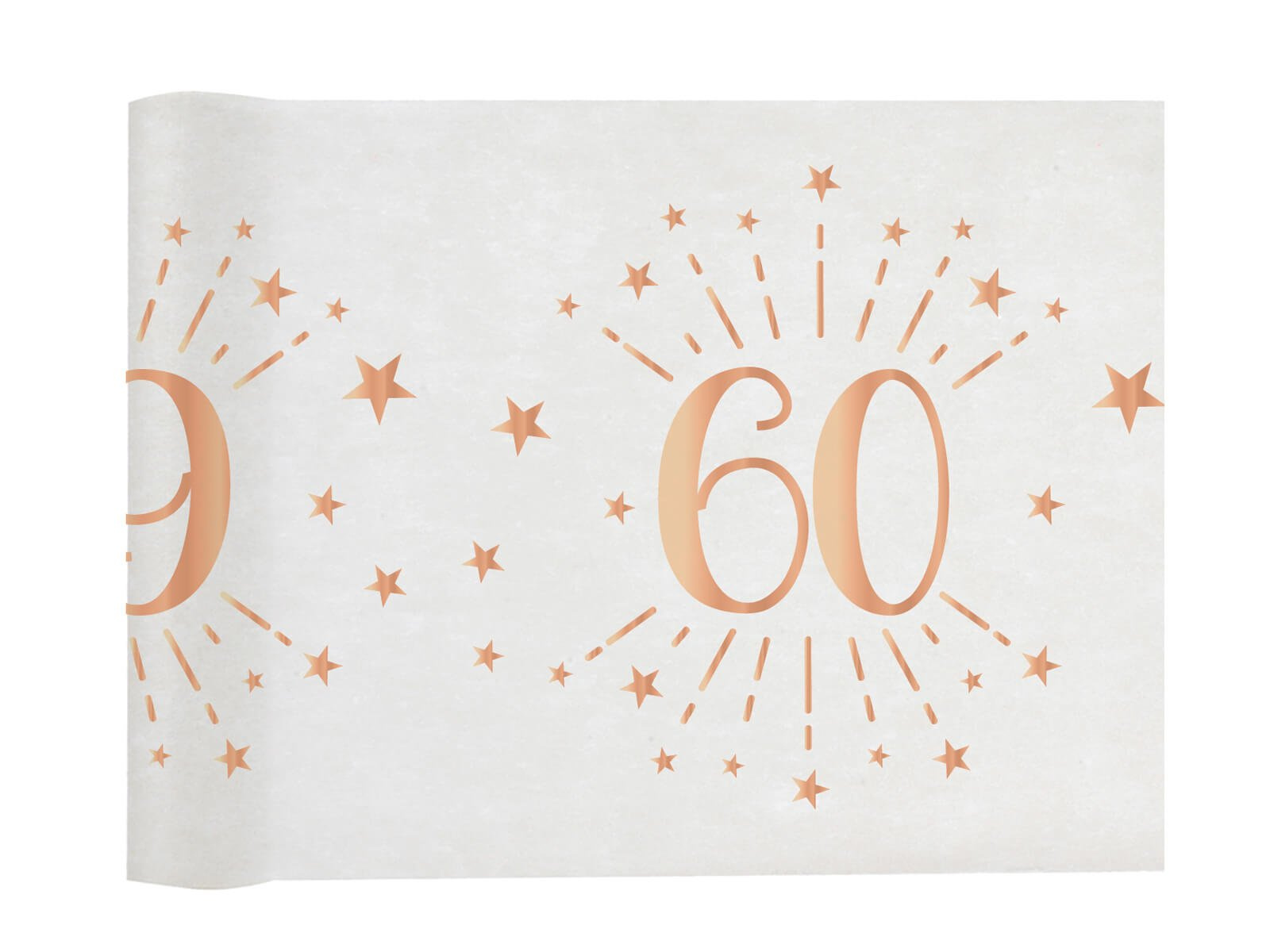 Dekoracja bieżnik na stół z nadrukiem na 60 urodziny Sparkling różowe złoto - 30 cm x 5 m - 1 szt.