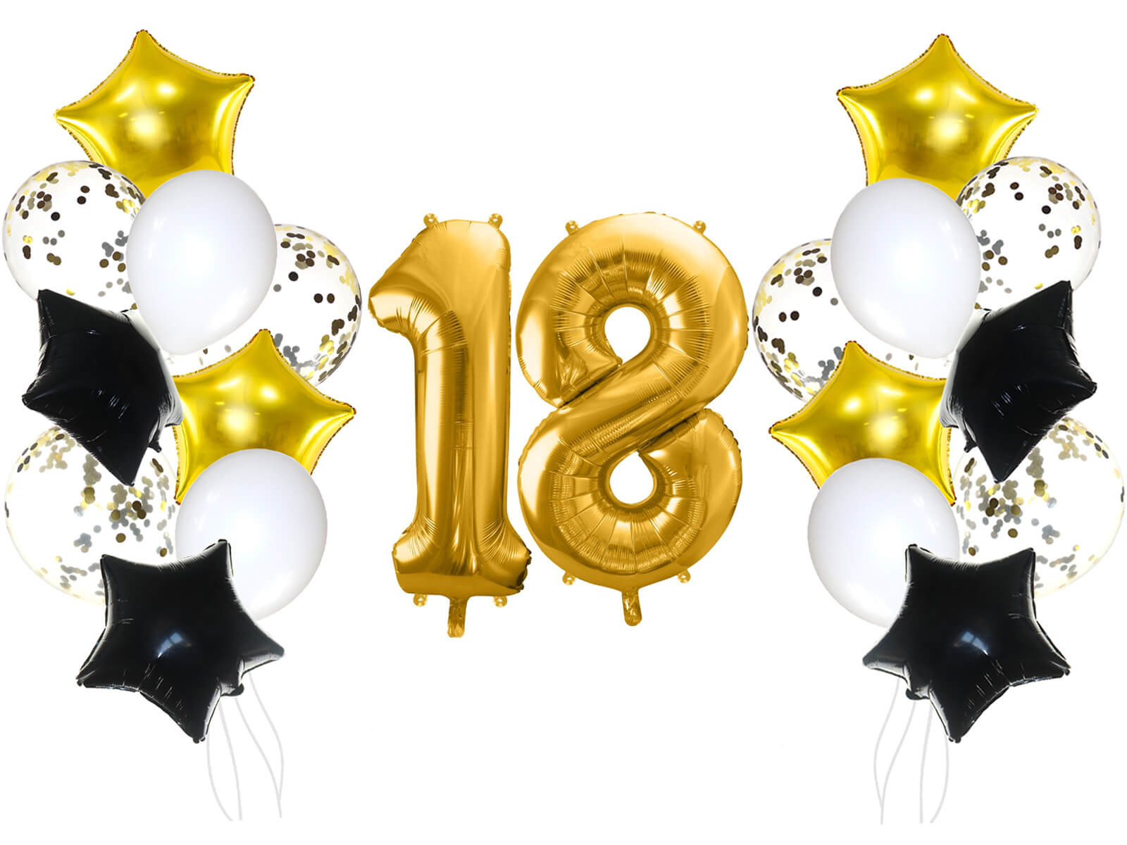 Zestaw balonów na osiemnastkę złoto-czarny - 21 szt.